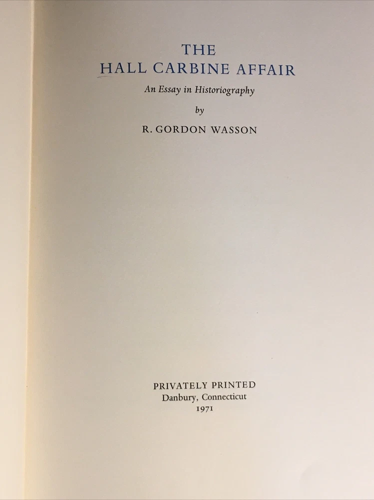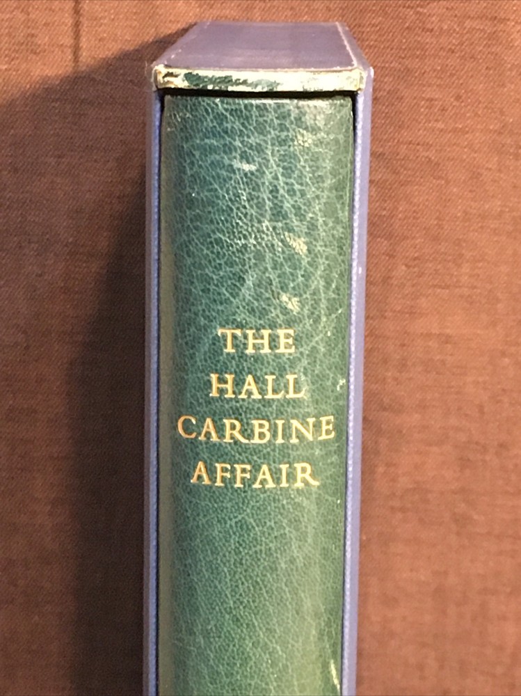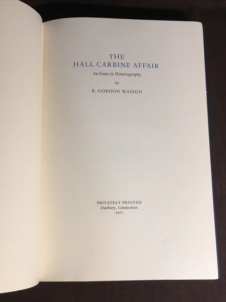 The product is a rare 1971 limited first edition of "The Hall Carbine Affair" by R. Gordon Wasson. This book, originally published in English, is a valuable collectible item with a leather binding and a slipcase. Written by the author himself, this special edition history book delves into the military topic, making it a unique piece for avid collectors and enthusiasts of antiquarian literature.