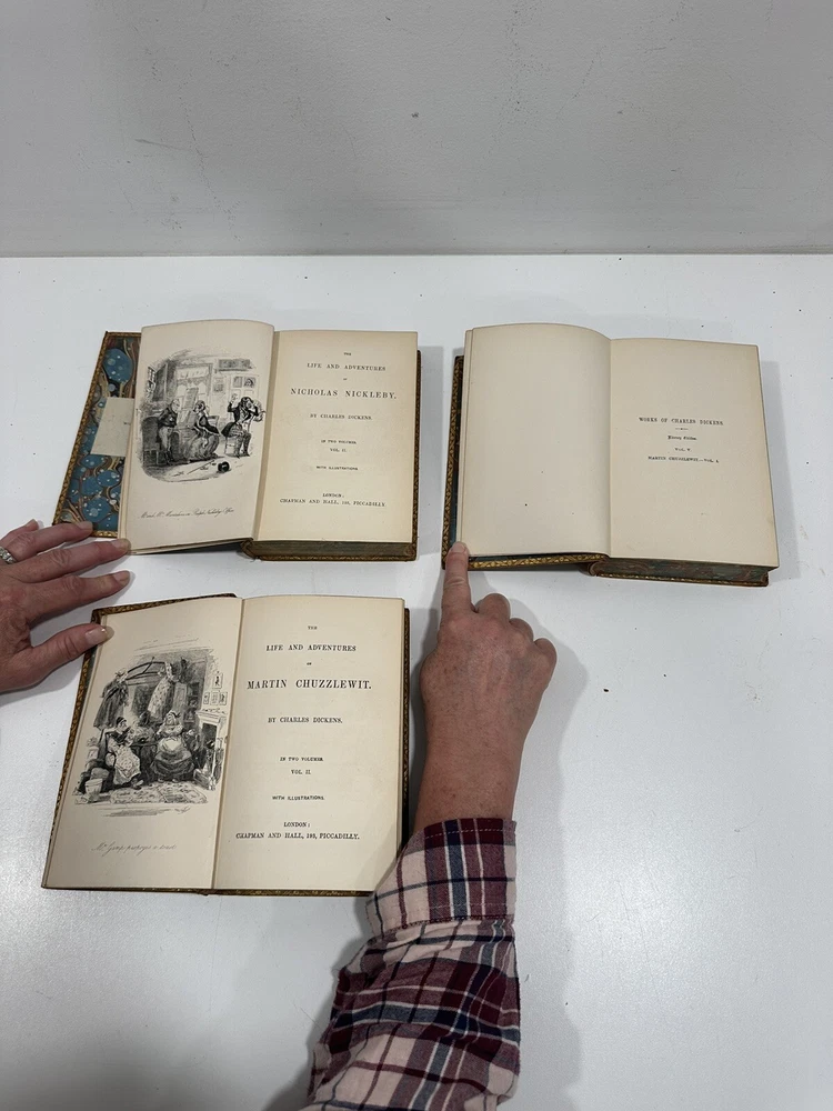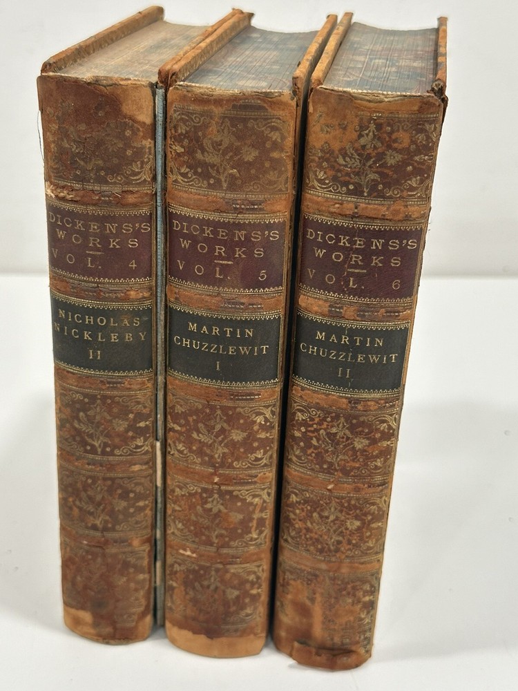 This rare 3-volume set from 1869 features two of Charles Dickens' classic novels: "Martin Chuzzlewit" and "Nicholas Nickleby." These volumes are a must-have for any Dickens collector or literary enthusiast, offering a glimpse into the rich storytelling and intricate character development that Dickens is renowned for. Condition: Fair. The hardcovers are worn and faded, and the binding is brittle and falling off in places. Binding: Hardcover with original bindings, ensuring authenticity and historical value. Publication Year: 1869, making these volumes over 150 years old. Publisher: Chapman & Hall, a renowned publisher of Dickens' works. Special Features: Includes original illustrations and prefaces by Charles Dickens, adding to the collectible nature of these books. Dimensions: Each book measures approximately 8 x 5 inches, making them a perfect fit for any bookshelf. Buy with Confidence: Check out our positive feedback and buy with confidence. We offer a hassle-free return policy if you are not completely satisfied with your purchase. Shipping: Your item will be shipped within 24 hours of completed payment unless otherwise noted in this listing (excluding weekends and holidays). We ship all our items with the most reliable, secure, and economical service possible for our customers. We take great care in packaging your treasures to ensure they arrive at your doorstep ready to be cherished. Expect prompt shipping and transparent communication throughout. Return Policy: We accept returns for all items within 30 days (excluding international sales). Customer Satisfaction: If you are not completely satisfied with your purchase, please send me a message before leaving feedback or opening a case and I will resolve the issue promptly. Thank you!! All of our pre-owned listings are inspected, cleaned, laundered, tested, and/or prepped prior to shipping. This policy is in place to ensure your satisfaction. Check out our other fine books and magazines here!