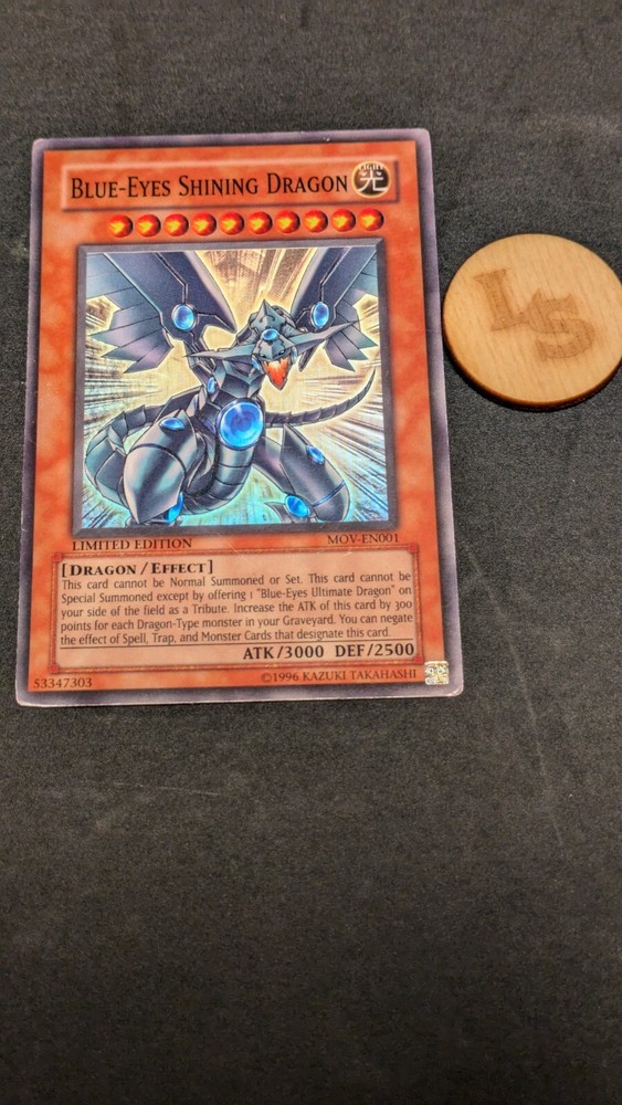 Rare Blue Eyes Shining Dragon MOV-EN001 Limited Edition YuGiOh Foil. Condition is Ungraded. Shipped with eBay Standard Envelope for eligible items up to $20....