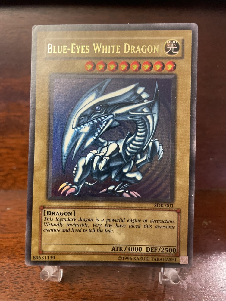 This rare original Blue-Eyes White Dragon Holo Starter Deck card from the Kaiba set of Yugioh is a highly sought-after collectible for fans of the Pokémon TCG game. Manufactured in 1996 by Konami, this ultra rare card features stunning holofoil finish and shiny design, making it a valuable addition to any card collection. With its iconic blue eyes and normal monster type, this card illustrated by Ken Sugimori is a must-have for collectors and players alike who appreciate its vintage charm and unique attributes.