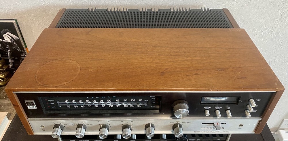 In good working condition with the exception of the tuner. When I turn the knob the dial doesn't move so it's stuck in between channels and all I get is static, therefor this stereo is being sold as is for parts/repair. All other functions seem to work well and I get great sound out of it through speakers and headphones when I plugged my phone into the auxiliary input. Needs a good cleaning but it's in great cosmetic condition with no obvious damage other than what looks like a moisture ring and light scuffing on the wood case. A great candidate for repair! Returns not accepted as you are knowingly bidding on a receiver that isn't fully functional.