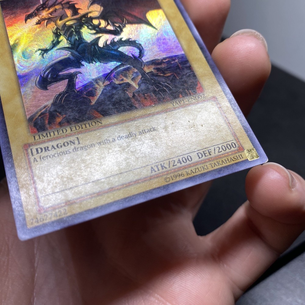 The Red Eyes B. Dragon YAP1 - EN002 Anniversary Pack is a rare and collectible card from the Yu-Gi-Oh! TCG. This limited edition dragon card has dark attribute, with 2400 attack power and 2000 defense toughness. Manufactured by Konami, the card features a holographic finish and is part of the Anniversary Pack set. English language, the card is a sought-after addition for fans and collectors of Yu-Gi-Oh! TCG.