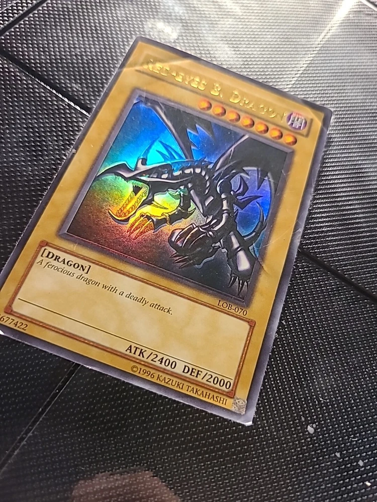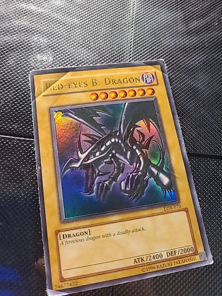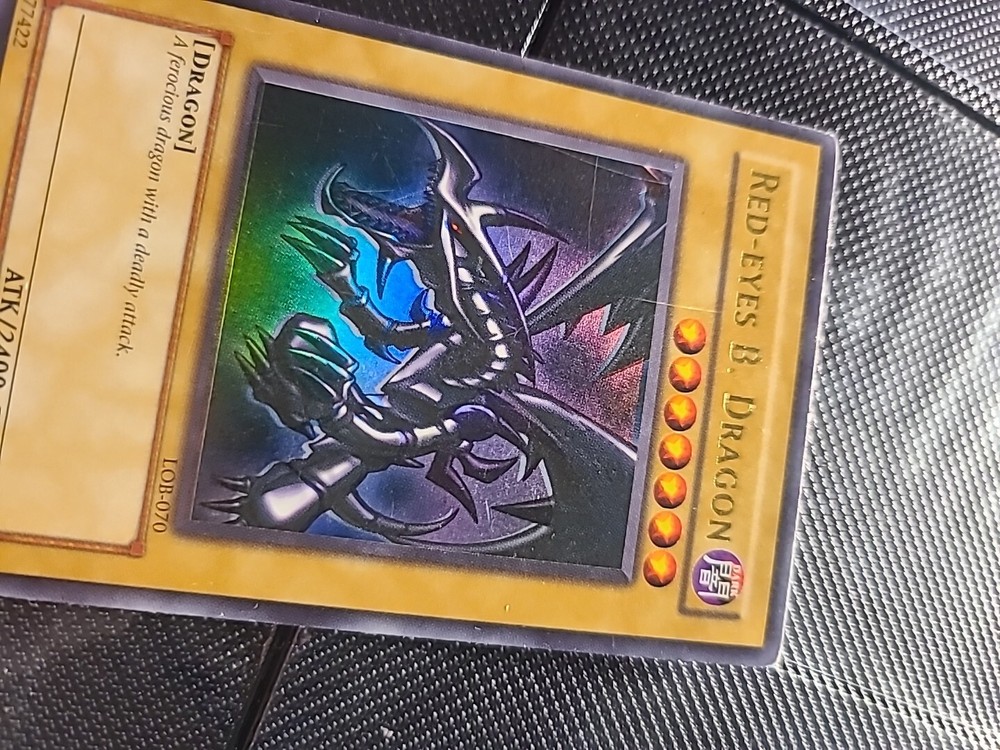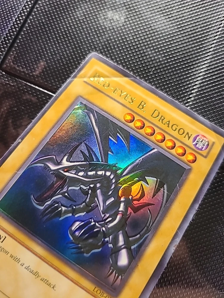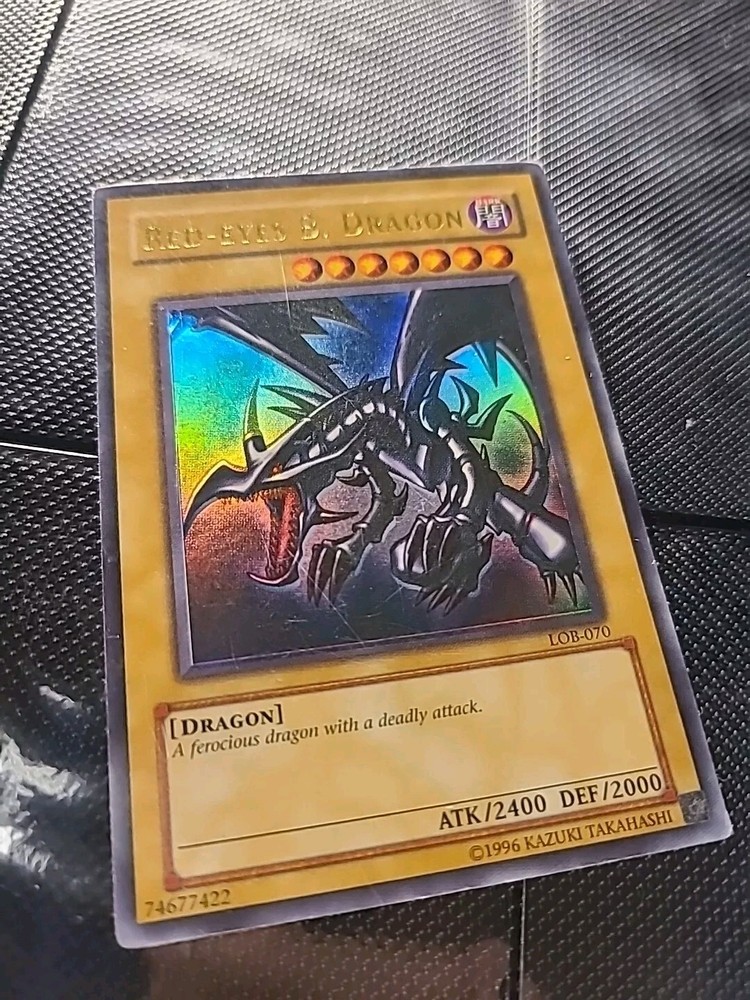 This ultra rare Red Eyes Black Dragon card from the Yu-Gi-Oh! TCG features an unlimited edition with a holographic shift and wavy print. The card number is LOB-070 and it is a must-have for any collector of CCG individual cards. Its rarity and unique features make it a valuable addition to any collection. Get your hands on this card today and add a touch of brilliance to your Yu-Gi-Oh! TCG collection.