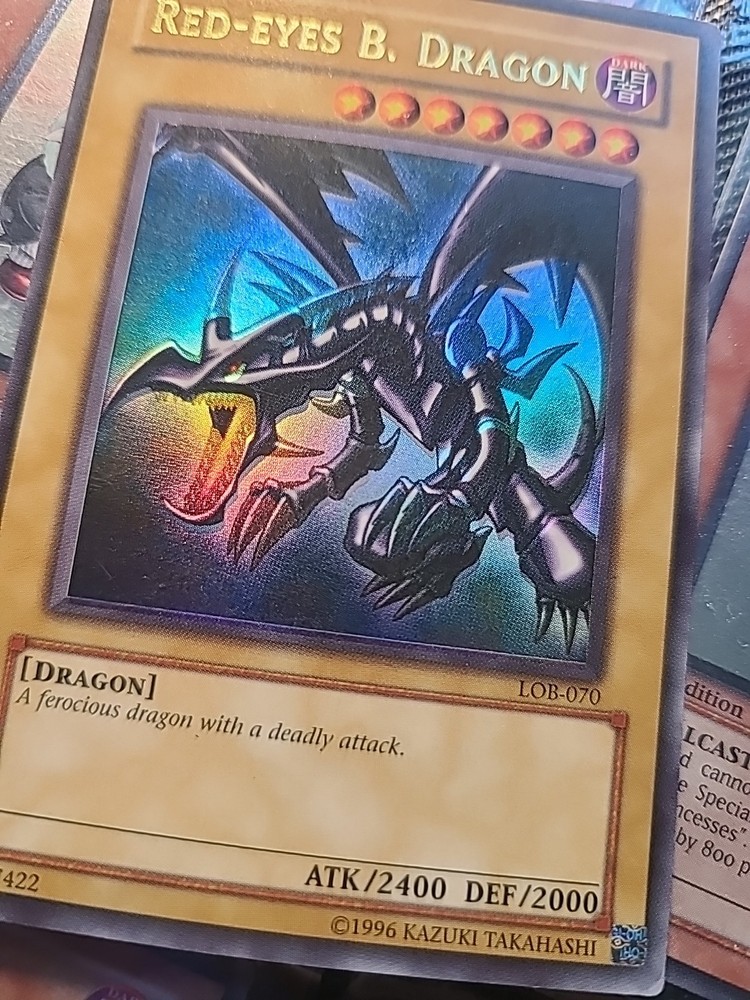 The Red Eyes Black Dragon LOB-E056 Ultra Rare HOLO SHIFT ERROR card is a highly sought-after collectible card from the Yu-Gi-Oh! TCG. Manufactured by Konami, this English language Monster Card belongs to the Legend of Blue Eyes White Dragon set and features a Normal creature type. The card is known for its unique HOLO finish and is a valuable addition to any collector's deck.