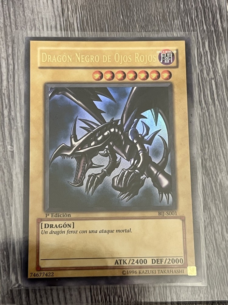This Spanish version of the iconic Yu-Gi-Oh! TCG card, Red Eyes Black Dragon, is a must-have for collectors and players alike. With its near mint or better condition, this 1st edition card is sure to impress. The card features the powerful dragon creature with its signature red eyes and is a valuable addition to any CCG individual card collection. This card is ungraded and comes with no guarantees or warranties, but its excellent condition speaks for itself. Don't miss out on the opportunity to own this rare and highly sought-after card!