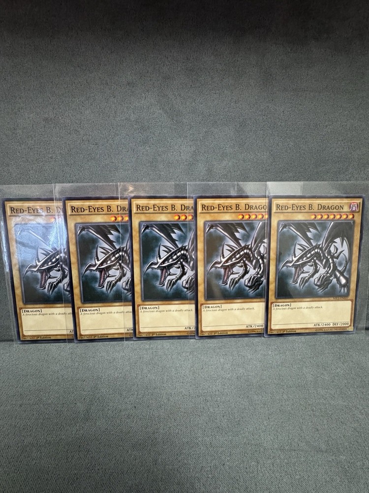 Elevate your Yu-Gi-Oh! TCG collection with the iconic Red Eyes Black Dragon MIL1-EN027, a staple from the Millennium Pack set. This lot includes five cards, each showcasing the formidable Red attribute that players and collectors alike have come to appreciate for its strategic value and aesthetic appeal. Crafted by Yu-Gi-Oh! Red-Eyes, these standard-sized cards are a must-have for enthusiasts aiming to enhance their deck's performance or complete their collection. With the included quantity of cards, you're well on your way to achieving either a formidable competitive edge or a prized display.