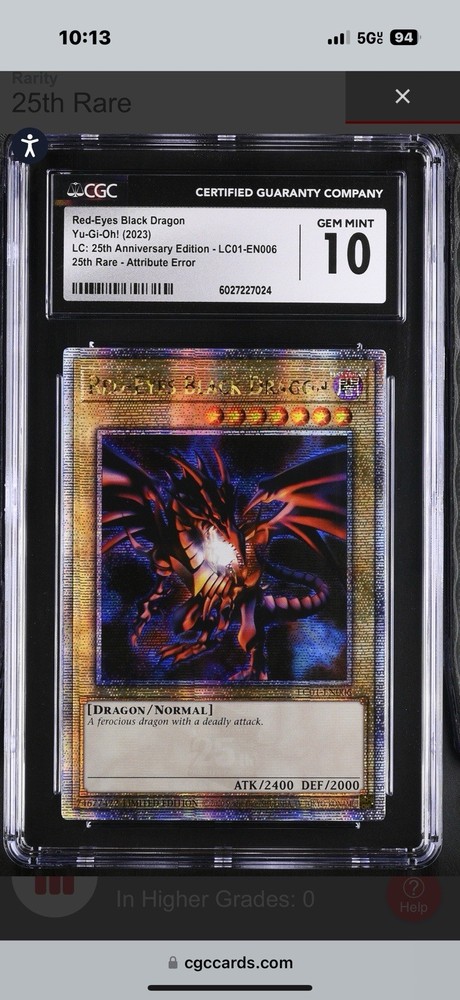 | Additional Description | Red-Eyes Black Dragon (Quarter Century Secret Rare) - Legendary Collection: 25th Anniversary Edition (LC01) |