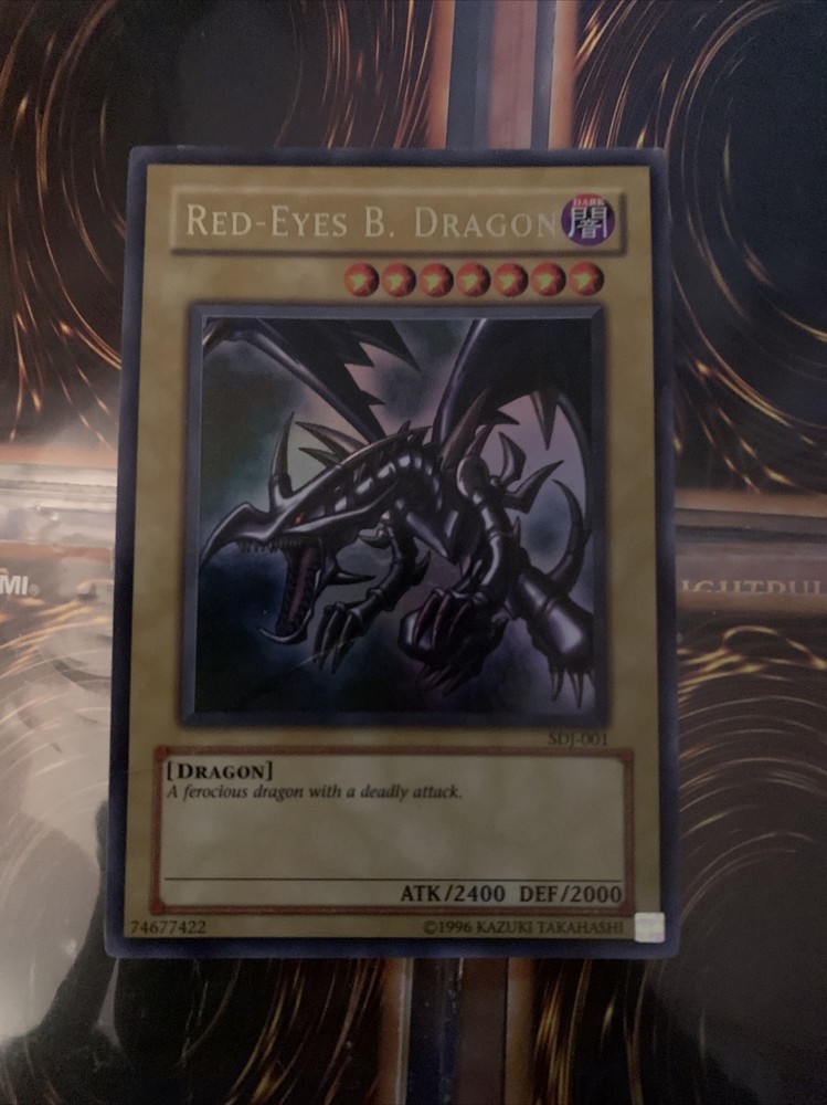 Red Eyes Black Dragon SDJ-001 Rare Holo Yugioh Card Near Mint. Condition is "Used". Shipped with USPS First Class....