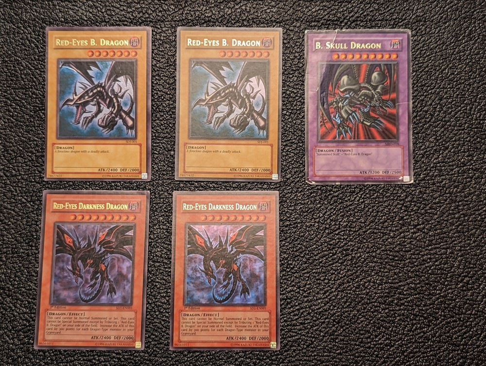 Heavily played B Skull Dragon and Lightly played red eyes darkness dragons and red eyes b dragons.