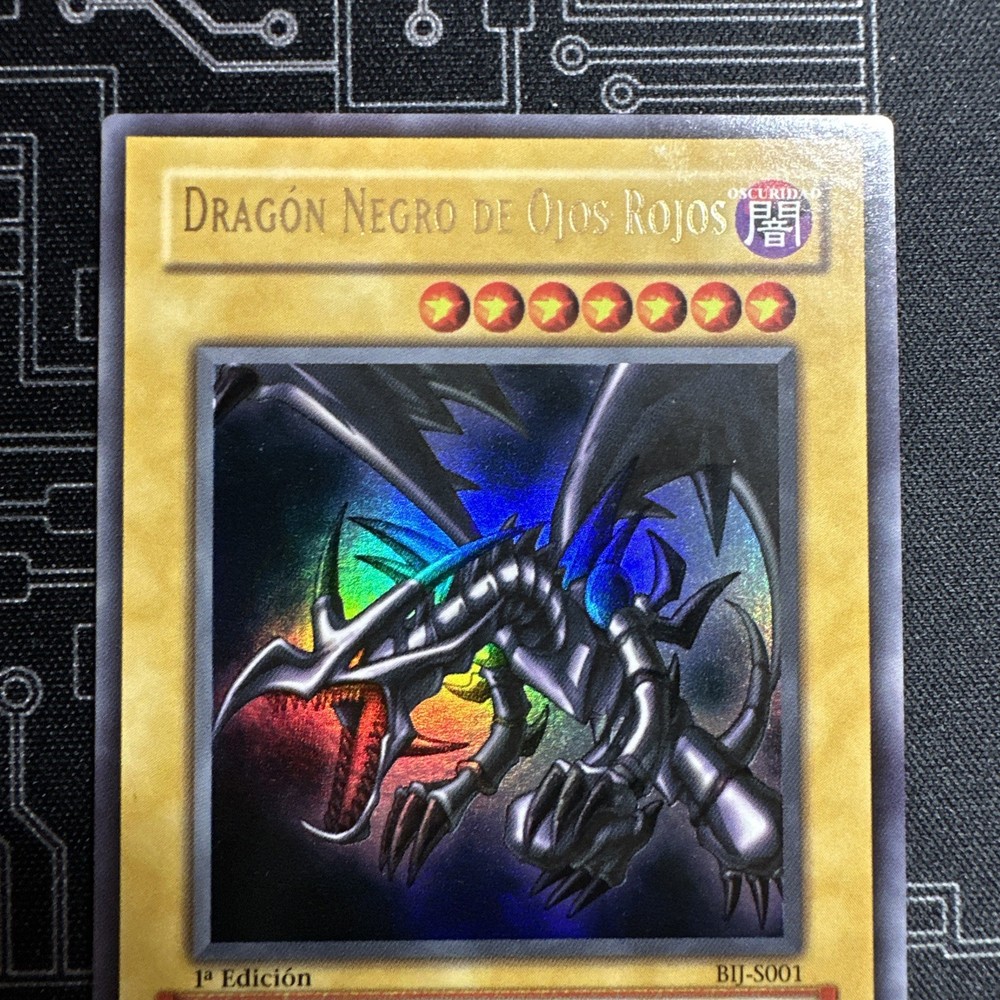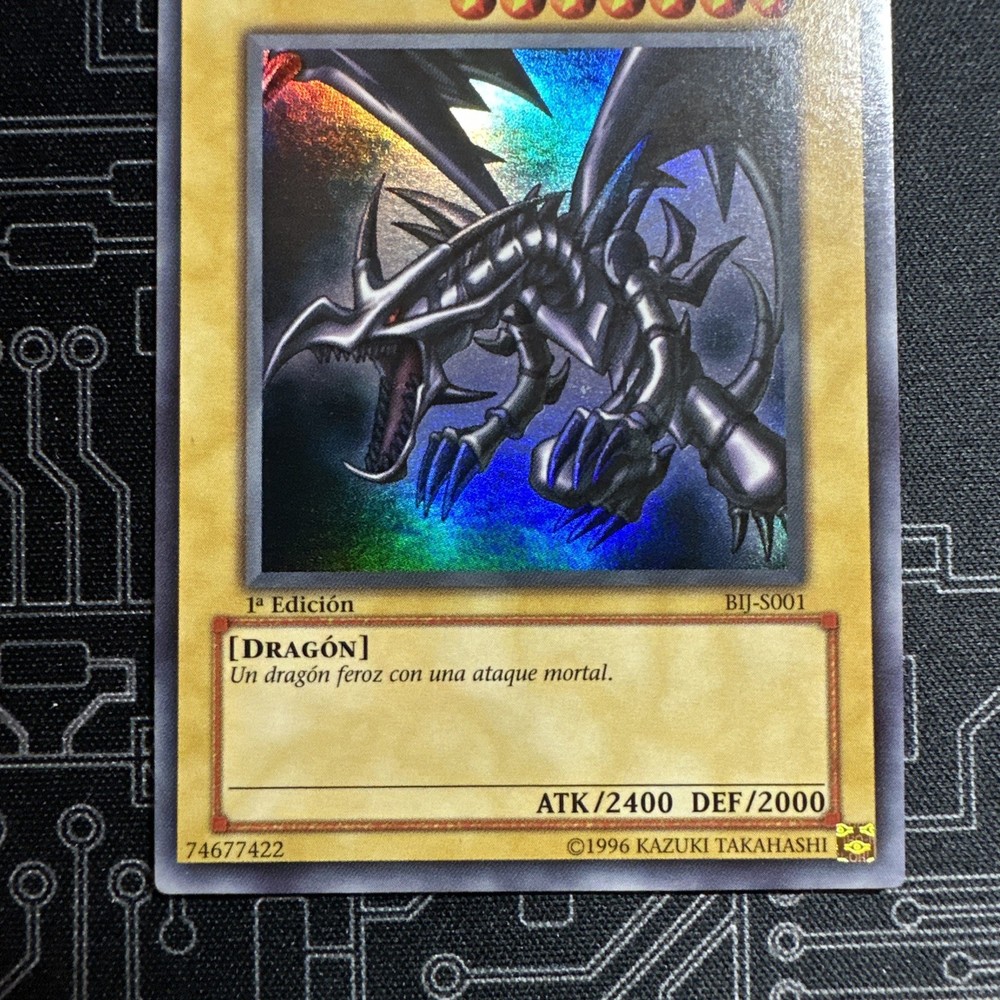 This rare and highly sought-after Yu-Gi-Oh! TCG card features the iconic Red-Eyes Black Dragon creature/monster type, with a stunning holo finish. The card is from the Joey set and has the attributes of dark magic, making it a powerful addition to any collection. The card is a 1st edition ultra rare with the card number BIJ-S001 and SDJ-001. It was manufactured by Konami in 2003 and is in mint condition. The card is in Spanish language and has a normal card type. Don't miss the chance to add this impressive card to your collection.