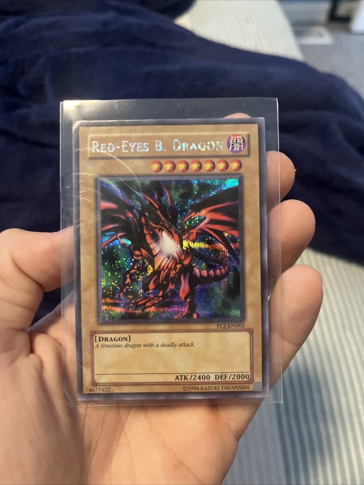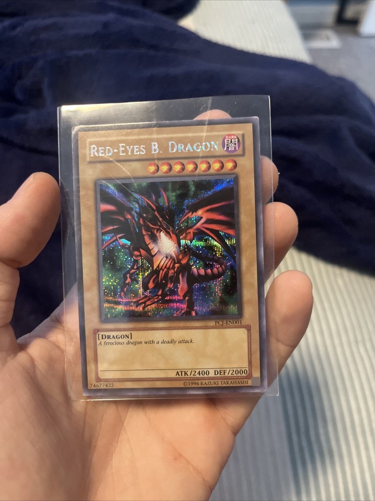 Dive into the realm of duelists with the iconic Red-Eyes B. Dragon card from the Power of Chaos: Joey the Passion set. This Prismatic Secret Rare gem, card number PCJ-EN001, is a must-have for collectors and players alike, featuring the formidable Dragon creature/monster type with an attack power of 2400 and a defense toughness of 2000. Konami's craftsmanship shines with this Limited Edition card, offering a striking addition to any Yu-Gi-Oh! TCG arsenal. Its rarity and the prestige of being a part of the English-language release make it a standout piece. Whether for competitive play or as a treasured collectible, Red-Eyes B. Dragon is a timeless piece of the Yu-Gi-Oh! legacy.