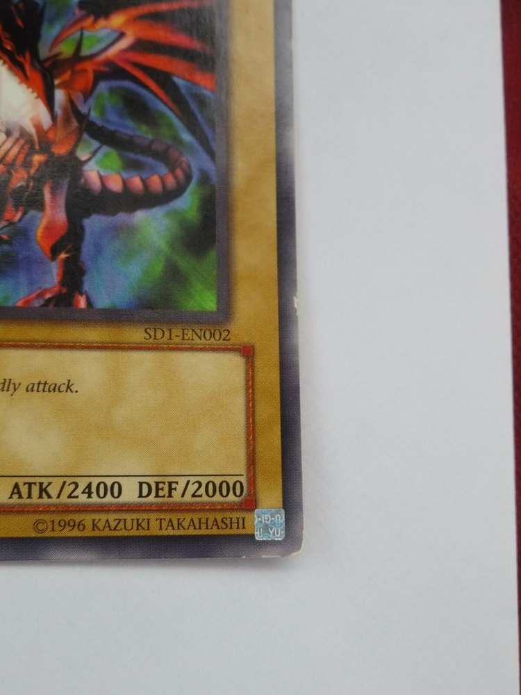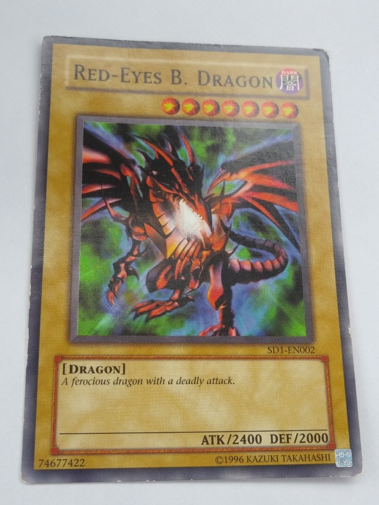 Red-Eyes B. Dragon SD1-EN002 Yugioh TCG Card Please see all photos. This will make a fun addition to any collection. _________________________________________ **Note** - We source our items from a wide variety of people and stores, and we do our absolute best to describe each and every item for sale perfectly, but we CAN NOT confirm that every item is from a Pet-Free or Smoke-free home. We offer returns on almost all items, so buy with confidence, but realize that any particular item may or may not have an odor of smoke or pets. Scents are subjective, and what might irritate one person might be unnoticeable / has no affect on others. If there are any problems or issues, we will gladly work with the buyer, so please contact us immediately and we will do our best to address any needs or concerns. Please voice any concerns before leaving feedback. Shipping Policies - We strive to offer the most competitive shipping costs to allow our buyers to have the best service for the price. We do not add any handling charges or pad shipping weight. Every item is expertly wrapped/packaged, and we use an abundance of care to ensure that no damage can occur to an item during shipping. We ship FAST. All items ship within the next business day after payment is received, and very often we ship the same day as the purchase is made (generally if the purchase happens before 2PM EST, it ships that day). While not always possible, we can combine shipping to save on multiple purchases, but this must be requested BEFORE purchase (sometimes combining shipping actually costs more than shipping multiple items individually, due to package sizes). Currently we only use Ebay's Global Shipping Program to ship internationally. General Packaging Practices - As stated above in the "Note" section, we take extreme care when wrapping items. Almost all items get bubble wrapped (even non-fragiles) before being packaged. All trading cards ship in a top loader for protection and most cards are placed in sleeves beforehand. Cards under twenty dollars are generally shipped in a first class envelope. Cards priced above that amount are usually bubble wrapped and shipped in a poly-mailer style envelope. Comic Books are generally boarded and bagged for protection during shipping, and most times the comic is placed between 2 pieces of rigid cardboard for additional protection. Comic books over $50 usually also get shipped in a cardboard box (similar to a GeminI mailer). Grading - We are not professional graders of anything, but we strive to give an accurate & realistic grade to items when we do give our opinion. Most items that we sell do not need a grade but we do give our grading opinion on many comic books, trading cards, and occassionaly magazines. We use the most current guide books and internet resources to help differentiate between grades. Our comic grading is based on Overstreet guidelines. Since grading is subjective, your opinion might differ from ours, but we have had absolutely no complaints about grading, check our feedback! If you see an item that you would like to purchase and it is not graded, feel free to message us to see if we can give you our opinion. P.S. - Please be sure to ask any questions before purchasing. We are super-friendly, and extremely knowledgeable in the field of toys and many other collectibles, so please feel free to message any time!! Thank you for looking, stay safe out there, and have a great day!
