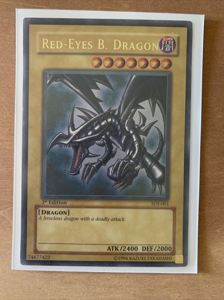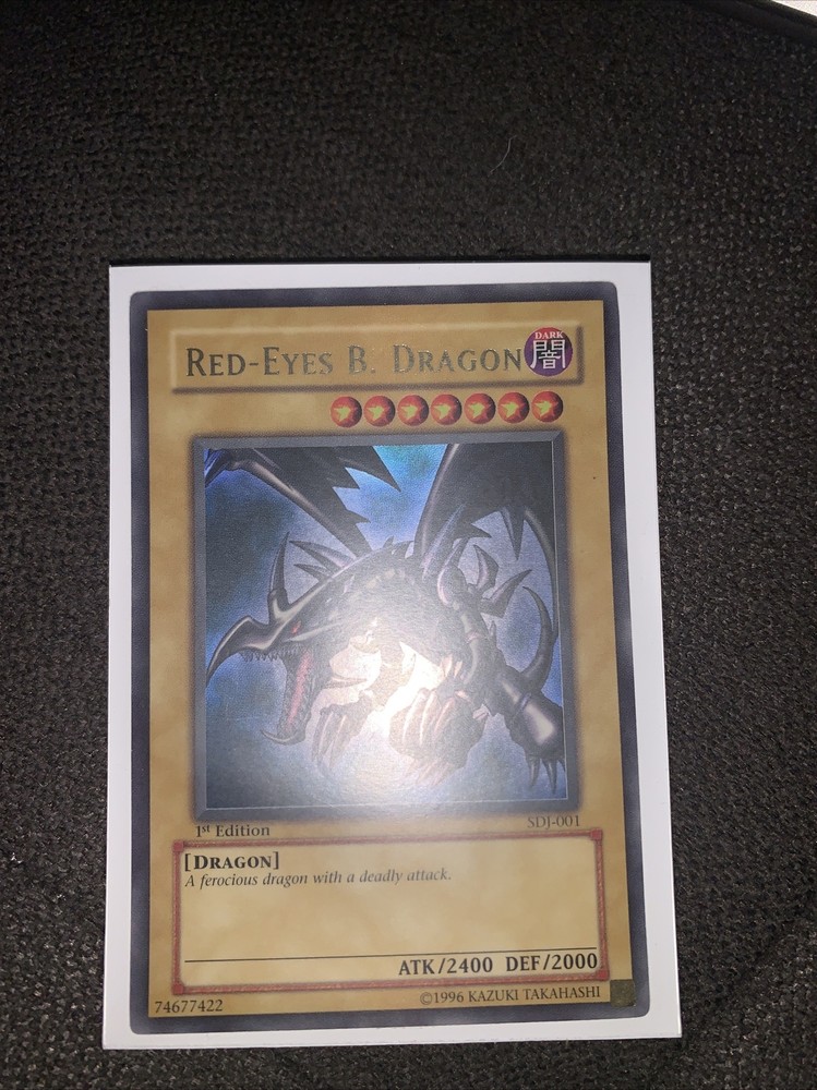 This Yu-Gi-Oh! TCG card named Red-Eyes B. Dragon SDJ-001 is a rare find for collectors. The card features a holographic finish and is a 1st Edition version. It belongs to the category of collectible card games and is part of the "Dragons" series. The card number is 74677422. The Red-Eyes B. Dragon SDJ-001 1st Edition is perfect for any Yu-Gi-Oh! TCG enthusiast looking to expand their collection. This card is highly sought after due to its rarity and features. It is sure to be a great addition to any collection of collectible card games.
