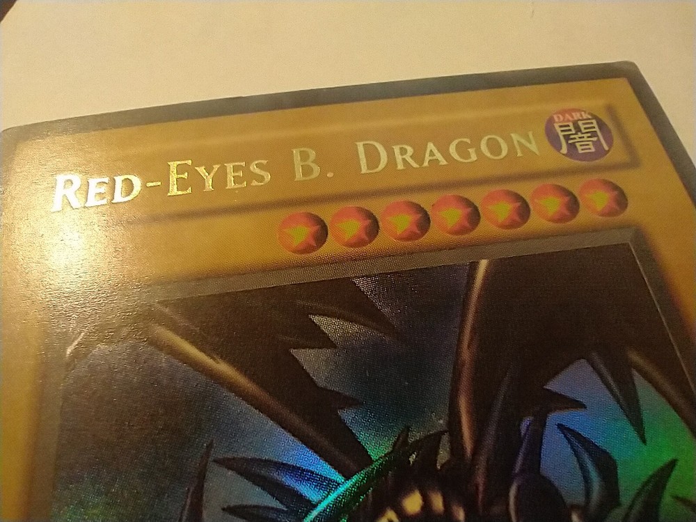 Card has dimples along the top near the title. Wear and creases on the corners.