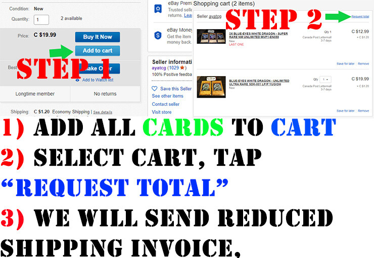 We would like to inform you that we are rebranding from AndyTCG to AYA. Follow us for updates, notices, and special deals. To do this please click Save on our storefront. Follow us on our Instagram page @ ayasarchive for your daily YGO Eye Candy from our collection. Feedback Feedback is Given , once Feedback is left . ;) For flash deals, follow our store, and subscribe to our email list. New cards every week. Shipping Shipping within Canada: (3-8 business days) Shipping from Canada to the U S A : (7-13 business days) We treat our cards and shipping process with the utmost importance, every delivery is recorded in our database. Every transaction is monitored. For future reference, if any disputes were to arise, documentation will be provided. These cards are : Shipped within 1 Business day. 100% authentic, tournament legal cards! Near Mint Condition, unless specified. Shipped sleeved and in a toploader! Delivery Delays: Suggested delivery range from eBay is not always accurate. Delays can be caused by many factors which are out of our control ie: Weather, customs, government disruption, strikes ...etc We ship our cards out within 1 business day by dropping them off at the Canadian post office. Thank you for understanding. Guide Mint ( NM/M ): No apparent imperfections; possible light scratches on surface. Has crisp corners, and unblemished edges. Near Mint ( NM) MAY contain very minor imperfection, possible light scratches on surface, 1-2 light blemish on edges of card, if you need please inquire for more photos Near Mint ( NM/VLP) MAY contain some minor imperfection, possible light scratches on surface, light blemish on edges of card Light Play (LP): Light edgewear or corner wear and/or multiple small bends/creases/dents. Moderate Play (MP): Very visible condition issues visible at a casual glance; border wear, corner wear, scratching or scuffing, creases or whitening, minor dirt buildup, water damage, etc. Heavy Play ( HP ): Major/multiple bends, creases, and/or dents throughout card, heavy border wear, tearing. Damaged (DMG) : The card is damaged, please refer to the picture in the listing for the location of the damage. (Even when sleeved, These cards cannot be used in official tournaments .) Please message or email us if you have any questions!