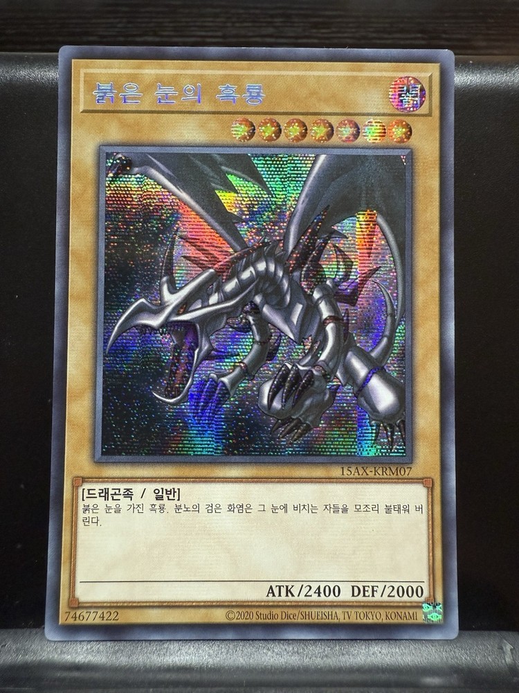 This YUGIOH trading card game features the iconic Red-Eyes Black Dragon 15AX-KRM07 in its Secret Rare Korean Verion. This collectible card is a must-have for any serious player or collector. The card is in English language and is not autographed. The Red-Eyes Black Dragon is a powerful addition to any deck and is sure to give any opponent a run for their money. This card is perfect for those who enjoy collecting rare and unique cards. Don't miss out on the opportunity to add this Secret Rare Korean Verion of the Red-Eyes Black Dragon to your collection.