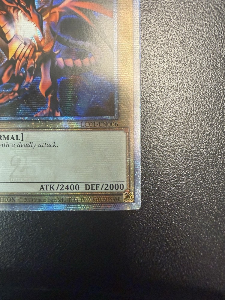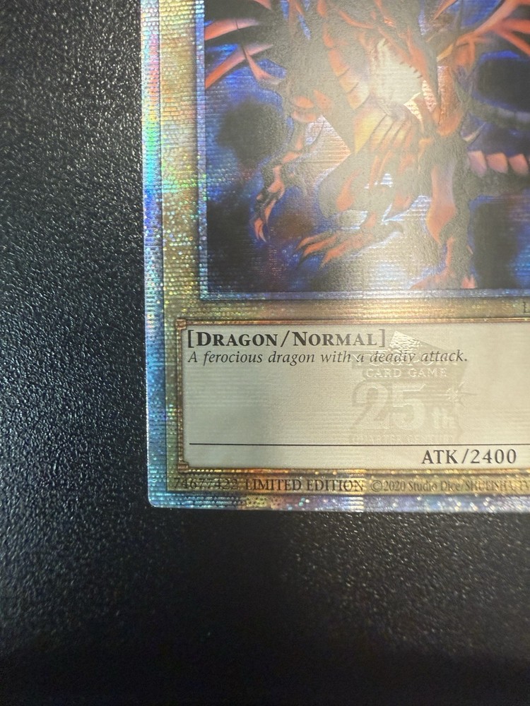 NM-Mint Sitting in binder since pulled Sleeve and toploader included The Red-Eyes Black Dragon (25th Anniversary Edition) LC01-EN006 Legendary card is a highly sought-after collectible card game item from the Yu-Gi-Oh! TCG. This ultra rare card features a dark dragon creature type with impressive defense and attack stats of 2000 and 2400 respectively. Manufactured by Konami, this limited edition card is part of the Legendary Collection and is sure to be a prized addition to any collector's deck. With its English language and unique card number, this special edition Red-Eyes Black Dragon card is a must-have for fans of the game.