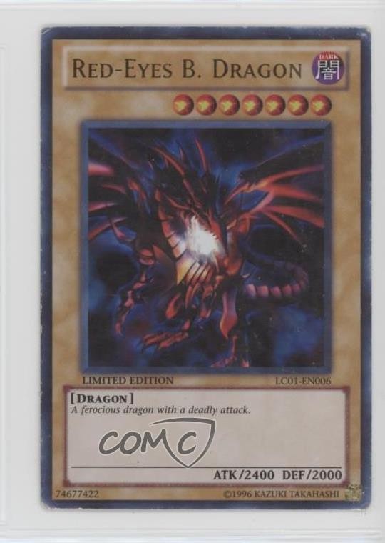 2023 Yu-Gi-Oh! - Legendary Collection 25th Anniversary - [Base] - Limited Edition #LC01-EN006 Red-Eyes Black Dragon COMC Item: 220367582 - YuGiOh Card - Featuring Red-Eyes Black Dragon Search for more: 2023 Yu-Gi-Oh! - Legendary Collection 25th Anniversary Search for more: 2023 Yu-Gi-Oh! - Legendary Collection 25th Anniversary - [Base] - Limited Edition View all of our Listings Auctions Buy It Now About Us Located in the beautiful Pacific Northwest, COMC (Check Out My Cards) is the world's largest consignment service for trading card singles. More than 10,000 people have used our consignment service to list over 50 million trading cards. Find out how we can help you consign your items on eBay by contacting us through eBay messaging. COMC -- "The Safe & Easy Way to Buy & Sell" Raw Condition for Modern Cards Unless otherwise noted, raw modern cards are listed in Near Mint-Mint condition or better. A NM-MT card appears to be Mint at first glance, but upon closer inspection, may exhibit some of the following: minor print defects (e.g. roller marks, print line, dimple), minor scratches, slight edge wear, and slight corner wear. Centering is clearly visible in the images provided and does not factor into our condition assessment. Raw Condition for Vintage Cards Unless otherwise noted, raw vintage cards are listed in Excellent condition or better. An EX card may exhibit some of the following: minor rounding of corners, surface wear, print defects, light scratches, and slight edge wear/chipping. Centering is clearly visible in the images provided and does not factor into our condition assessment. Domestic Shipping Combined shipping for multiple items is available. To receive combined shipping, please ensure all desired items are in your eBay shopping cart before proceeding to checkout. eBay limits orders to 40 items per order. We automatically combine multiple orders placed on the same day. If you place multiple orders on the same day, please contact us to request a refund of applicable shipping costs. Signature confirmation may be required on invoices over $400. All cards are protected and shipped securely. International Shipping COMC offers eBay's International Shipping (EIS) for international orders under $2,500* (see country exceptions below). All duties and import fees are paid at checkout; in the rare event that there are additional import fees upon delivery, these are borne by the buyer. EIS packages route through a shipping hub in Erlanger, KY before shipping to their final destination. Please note that EIS does not allow for combined shipments. The shipping rates are determined by eBay and cannot be adjusted. *Maximum sale price exceptions: Colombia, Kuwait ($2,000); Taiwan ($1,539); Chile, Costa Rica, Guatemala, Honduras, Trinidad and Tobago ($1,000); Antigua and Barbuda, Aruba, Belize, Dominica, Grenada, Philippines, Saint Kitts and Nevis, Saint Lucia, Montserrat, Turks and Caicos Islands ($500); Dominican Republic, El Salvador ($200). Please request a shipping quote through eBay messaging for orders that exceed the maximum sale price supported by eBay's International Shipping. You will be responsible for all duties and import fees for international orders shipped outside the EIS. All cards are protected and shipped securely. Payment COMC does not accept offers on our cards through our eBay storefront. COMC utilizes eBay’s managed payments system. If you are experiencing difficulties making a payment, please contact eBay for assistance. Return Policy Returns are only accepted on the rare occasion the item is not as described. If you are making a return, please initiate the return process through eBay so a mailing label can be provided for you. Prior to listing, our expert team carefully assessed this item to represent it accurately. Please review the description and high-definition images prior to purchasing to ensure this item meets your satisfaction. We welcome you to contact us if you have further questions about this item. Trust and Integrity COMC carefully assesses each item consigned to us to prevent fraudulent items from entering the marketplace. If you believe an item offered on COMC may be fraudulent, please contact us with details so we can investigate the issue. Items we determine are outside our supported items policy may be removed. Last Modified: 5/30/2025 12:11:04 PM PDT