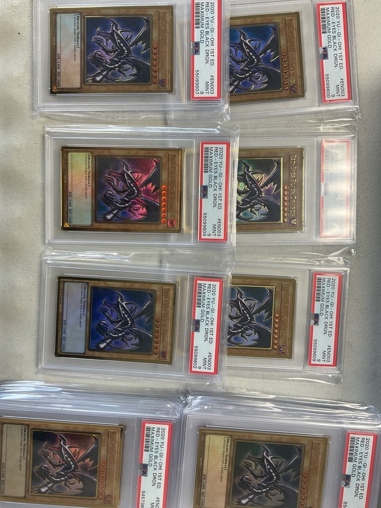 Red-Eyes Black Dragon - MAGO-EN003 PSA 9 Graded Grading Scale -NM-Mint, this card is typically pack fresh and has no visible scratches or wear. -Light Play, this card might have minor wear around the edges but no major scratches or wear. -Moderate Play, this card might have moderate amount of wear around the edges and might have small scratches. -Heavy Play, this card might have heavy wear around the edges and could have major scratches or slight bends. -Damaged, this card will possibly be written on, water damaged, torn, bent, scratched, or have a heavy amount of wear. Important Information -PLEASE REQUEST AN INVOICE BEFORE PAYING IF THE SHIPPING COST IS INCORRECT ON YOUR INVOICE. -The winner of this auction will receive the item(s) listed in the title of this auction. -The condition is listed below the image in the description, or in the title of this auction. -The picture(s) included in our auctions are often stock photos. -We reserve the right to limit orders to only 4 copies of a single card for any reason. If you want to buy more than 4 copies please email us before making your order. Failure to do so may result in a cancelation of your order. -We expect payment within 4 days of the end of the auction. There are no exceptions to this policy. -Combined shipping is only offered on items won within 4 days of each other, paid for on the same invoice. -Shipping and Handling rates are not negotiable. Please make sure you understand the costs before bidding. Shipping information Domestic Shipping -All orders under $50 are shipped in a toploader and envelope for FREE! -All orders over $50 are shipped via tracking in a bubble mailer for FREE! International Shipping -All orders under $100 are shipped in a toploader and envelope for $3.00, each additional item is $.25. -All orders over $100 are shipped via bubble mailer and will require registered mail at the cost of $20, each addition item is $.50 ______________________________________________________________________________________ Please contact us before leaving neutral or negative feedback and give us a chance to fix whatever issue or problem you have with your order. Thank you from the Wasteland!