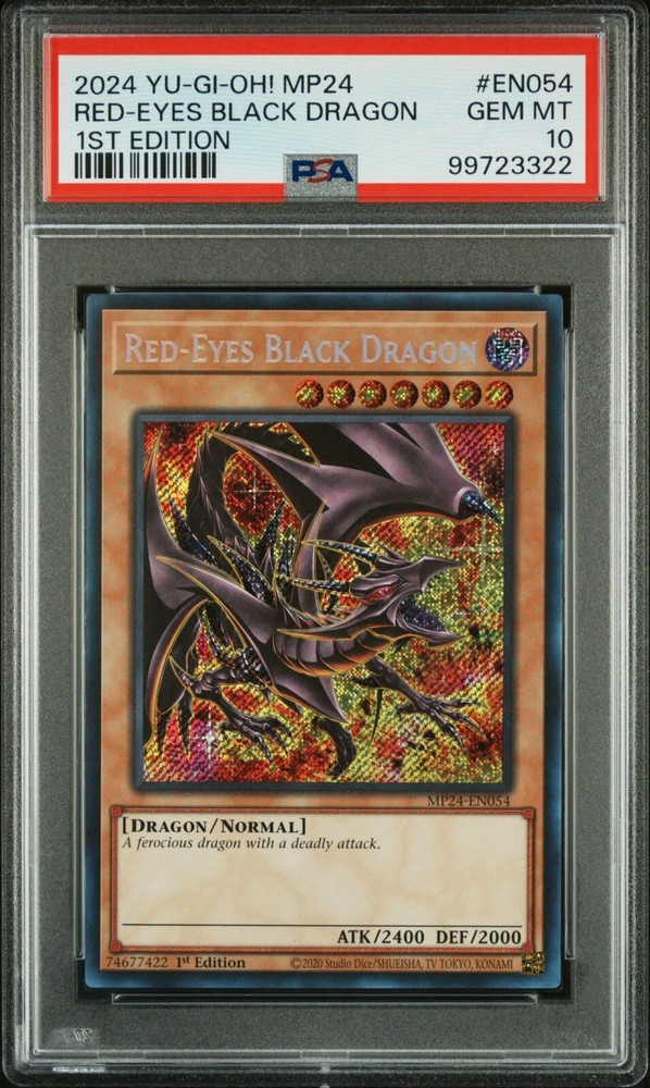 Up for sale is a PSA 10 MP24 Red-Eyes with the "Incorrect Foil." This has a normal Secret Rare Foiling instead of the Prismatic Secret Rare Foiling. HOWEVER, PSA Mislabeled this as the "normal" version and not the "incorrect" version. Let me know if you have any questions.