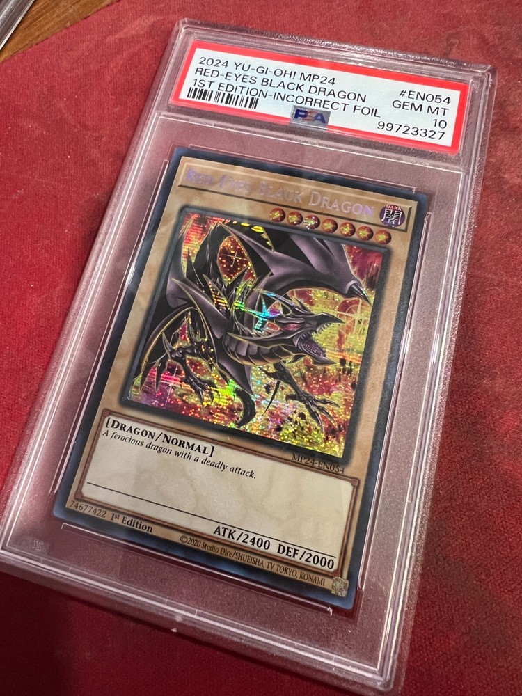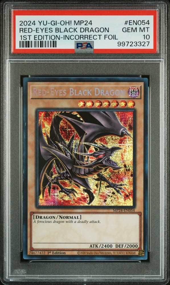 Up for sale is a PSA 10 MP24 Red-Eyes with the "Correct Foil." This has Prismatic Secret Rare Foiling and not Secret Rare Foiling. HOWEVER, PSA Mislabeled this as the "incorrect foil" version when it is actually the "correct" version. Let me know if you have any questions.