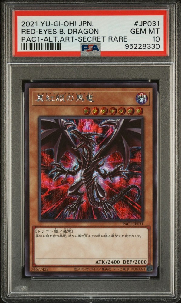 Red-Eyes Black Dragon PAC1-JP031 Secret Rare Alt Art Japanese Yugioh PSA 10 Gem Mint...