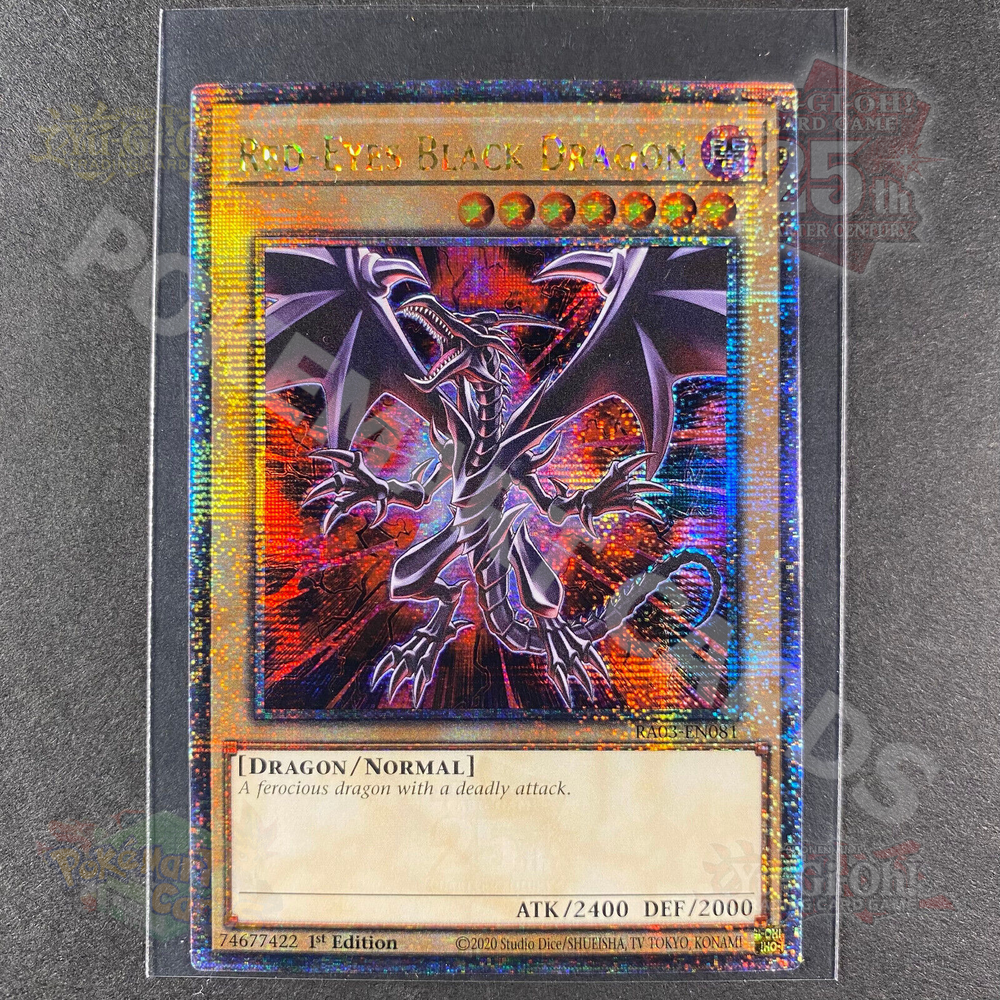 Yugioh Red-Eyes Black Dragon RA03-EN133 Quarter Century Secret Rare Alternate Art 1st Ed NM Pack Fresh Condition is Near Mint. FREE SHIPPING! Tracked with USPS Ground Advantage! Thank you for shopping at Pokemart Cards! Check out more cards HERE!