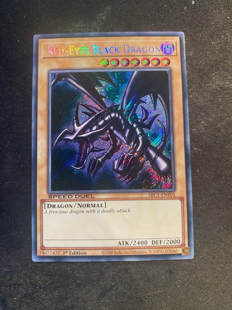 Red-Eyes Black Dragon - SBC1-ENF01 - Secret Rare - 1st Edition - Speed Duel N/M Card is 1st Edition Cards are in Near Mint Condition Combined Shipping is offered on all of my TCG Listings. When Checking out with multiple cards in your cart, click ‘Request total from seller’. This will allow me to combine the shipping for multiple cards if purchased together. If this does not show up for you, then please message me and I’ll create a listing for your order. Any Further Questions Please Message Me Thanks
