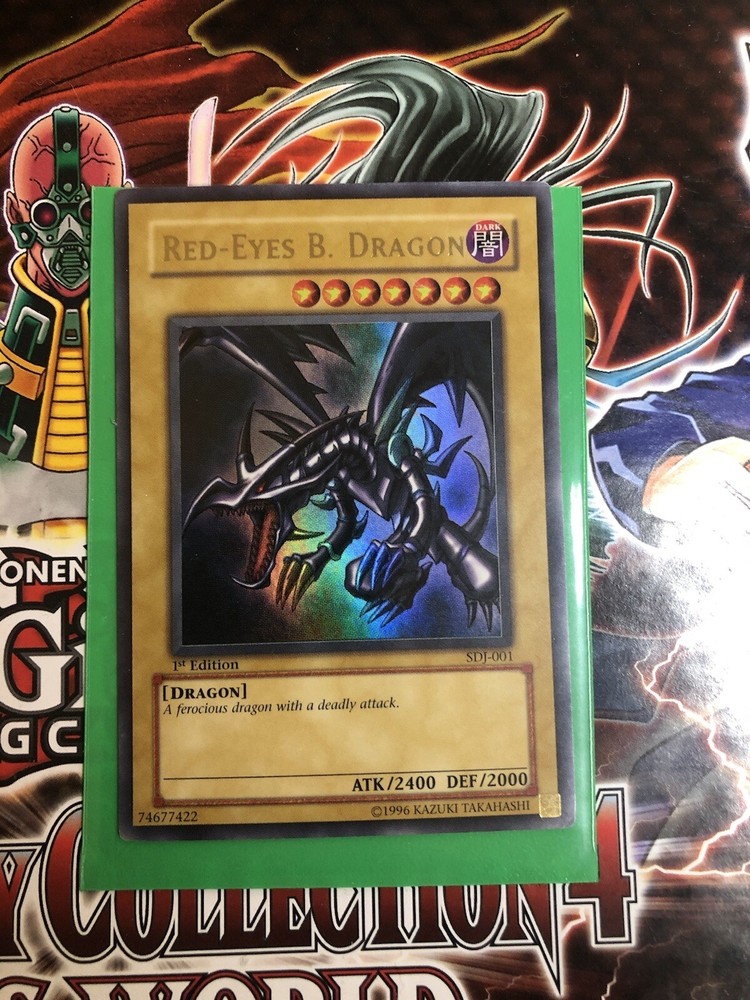 Red-Eyes Black Dragon SDJ-001 1st Edition Ultra Rare LP. Lightly played because corners of the card are a little worn but other than that a fantastic looking card!