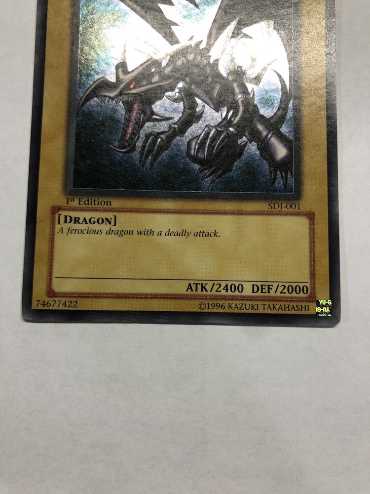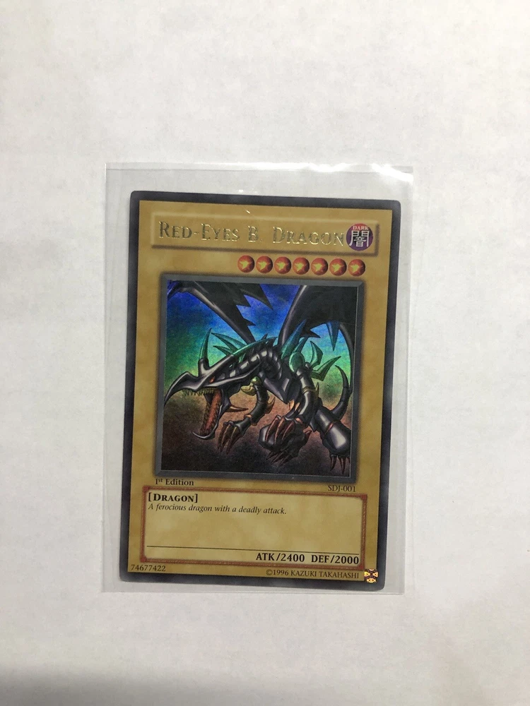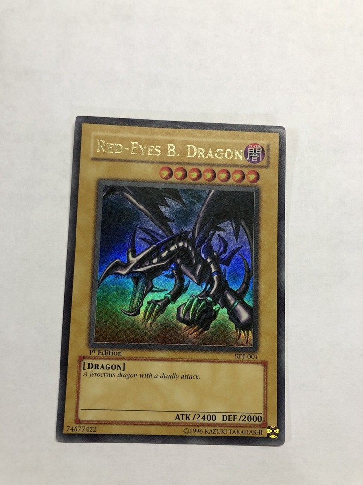 Red-Eyes Black Dragon SDJ-001 1st Edition Ultra Rare Yu-Gi-Oh Card LP/NM. Never played! One of the favorite cards of the collection. 1st edition Near Mint. Shipped in card protector + bubble mailer