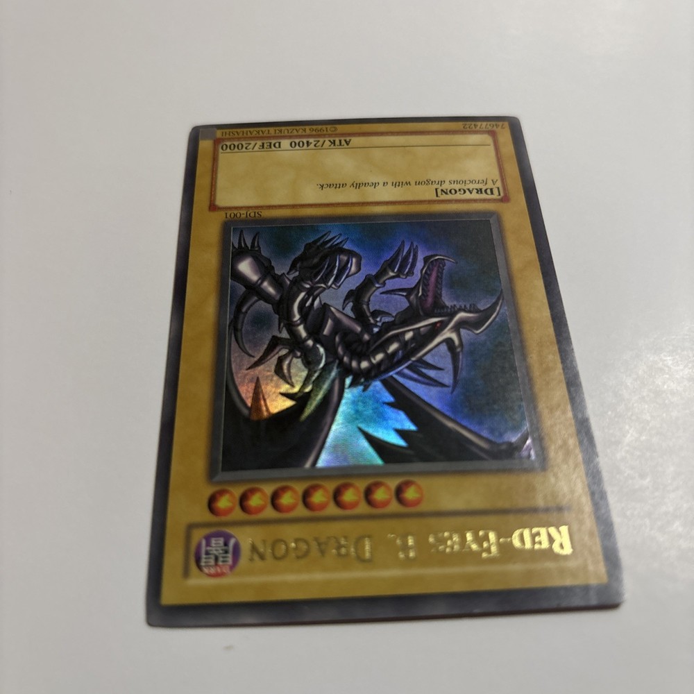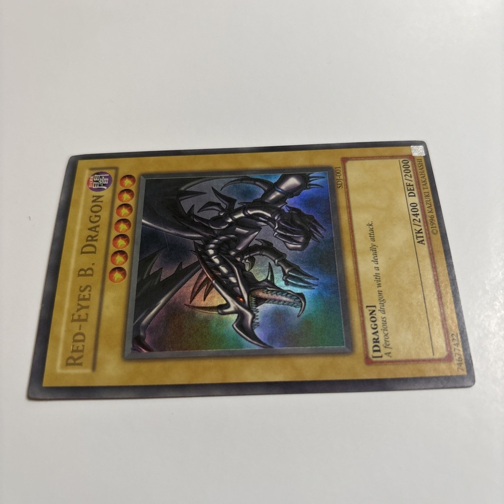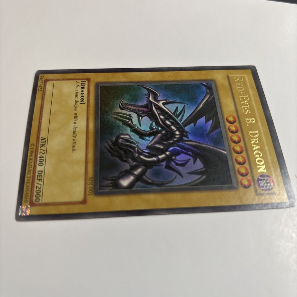 The Red-Eyes Black Dragon SDJ-001 1st Edition Ultra Rare Yu-Gi-Oh card is a highly sought-after collectible item from the Starter Deck Joey set released in 2002. This vintage card features the iconic Red Eyes Black Dragon character and dragon creature type, making it a valuable addition to any Yu-Gi-Oh! TCG collection. With its holo finish and ultra rare rarity, this English language card manufactured by Konami is a must-have for fans and collectors of the Yu-Gi-Oh! franchise.