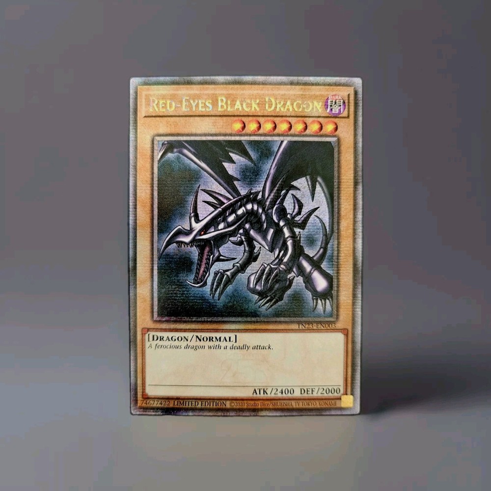 The "Red-Eyes Black Dragon TN23-EN003" is a Quarter Century Secret Rare card from the 25th Anniversary Tin: Dueling Heroes set in the Yu-Gi-Oh!. Card will be shipped in a card case, penny sleeve and plastic top holder, for extra protection.