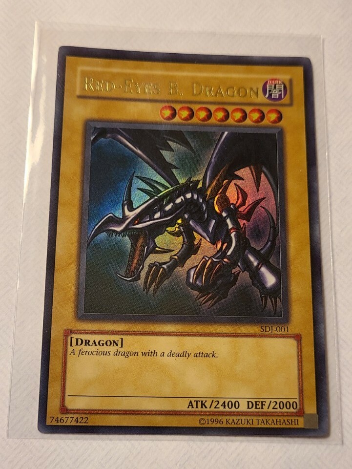 Red-Eyes Black Dragon (Unlimited) (SDJ-001) (Near Mint) (Not Played). Condition is "Used". Shipped with USPS First. Great edition of Red-Eyes Black Dragon (SDJ-001). Card is near mint and was inside a box in my closet unplayed and undamaged. Card you see in the pictures is the card you are getting. Offers are welcome.