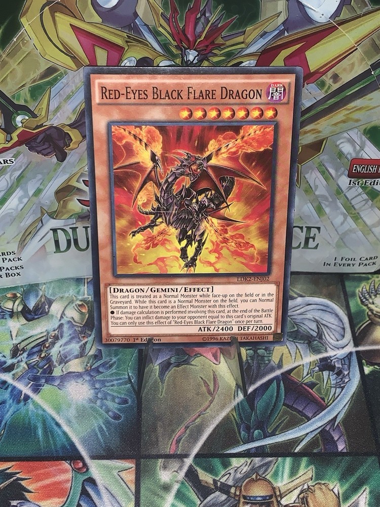 Unleash the power of the Red-Eyes Black Flare Dragon in your next duel with this 1st Edition gem from the Joey (LDK2-ENJ) set. A mainstay in any Yu-Gi-Oh! TCG collection, this card is a must-have for enthusiasts and competitive players alike, boasting the iconic 'Gemini' card type that can turn the tide of battle. Card number LDK2-ENJ02, the Red-Eyes Black Flare Dragon comes with a regular finish that maintains the classic look and feel of the card. Although ungraded, its near mint status ensures it's a worthy addition to your collection or a reliable pick for your next tournament. Don't miss the chance to own a piece of Yu-Gi-Oh! history.
