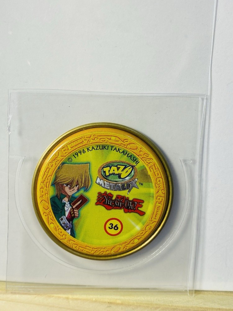 Unleash the power of the iconic Red-Eyes Black Metal Dragon #36 with this exclusive Gold Yu-Gi-Oh! Metalix Tazo Disk. A must-have for collectors and duelists alike, this tazo features one of the most revered creatures from the Yu-Gi-Oh! universe, detailed in stunning gold that captures the eye and stands out in any collection. Whether you're looking to enhance your gameplay or treasure a piece of Yu-Gi-Oh! history, this unmodified, original piece is ready to be the centerpiece of your collection. It's a perfect blend of nostalgia and quality, suitable for tazo enthusiasts and fans of the strategic card game. Add this golden treasure to your assortment today and hold a piece of the legacy in your hands. In great condition see pics Rare gold and gradable!!
