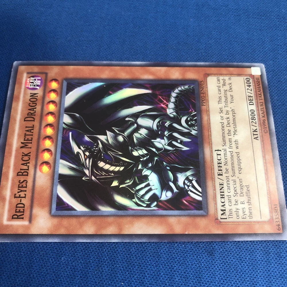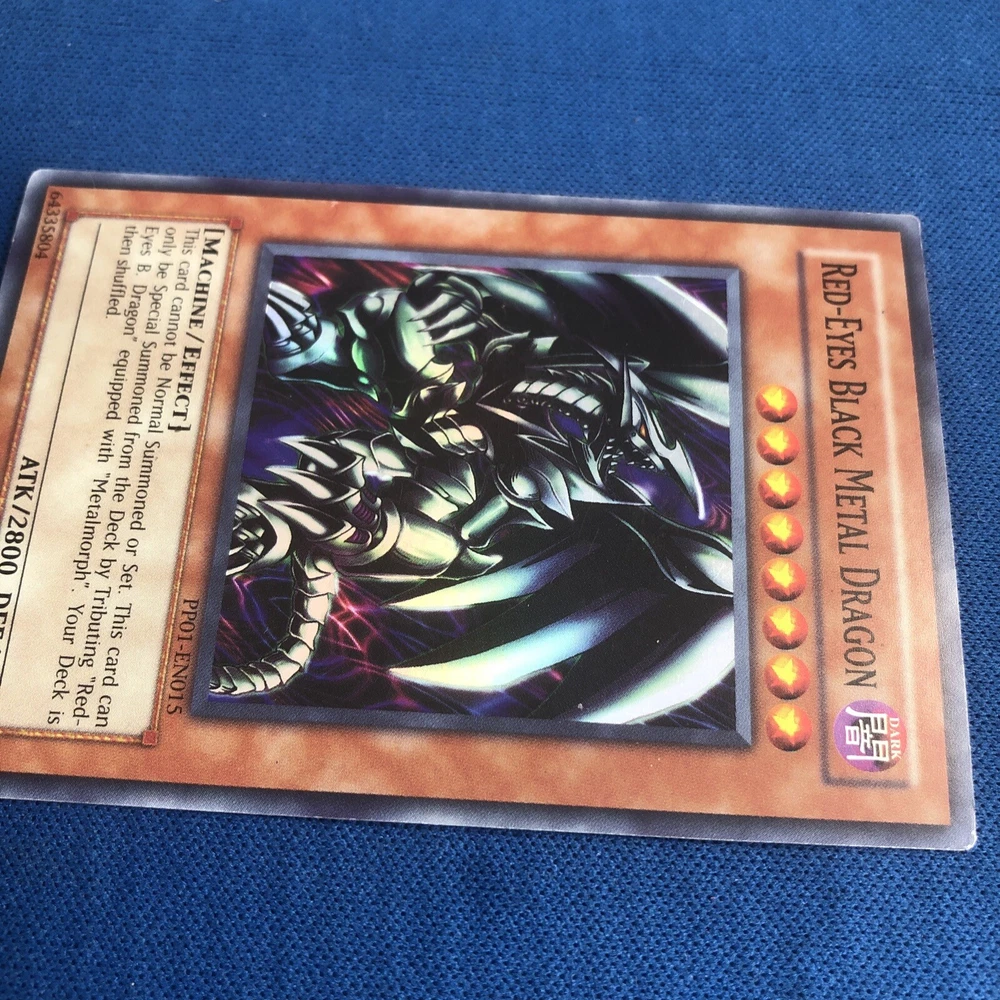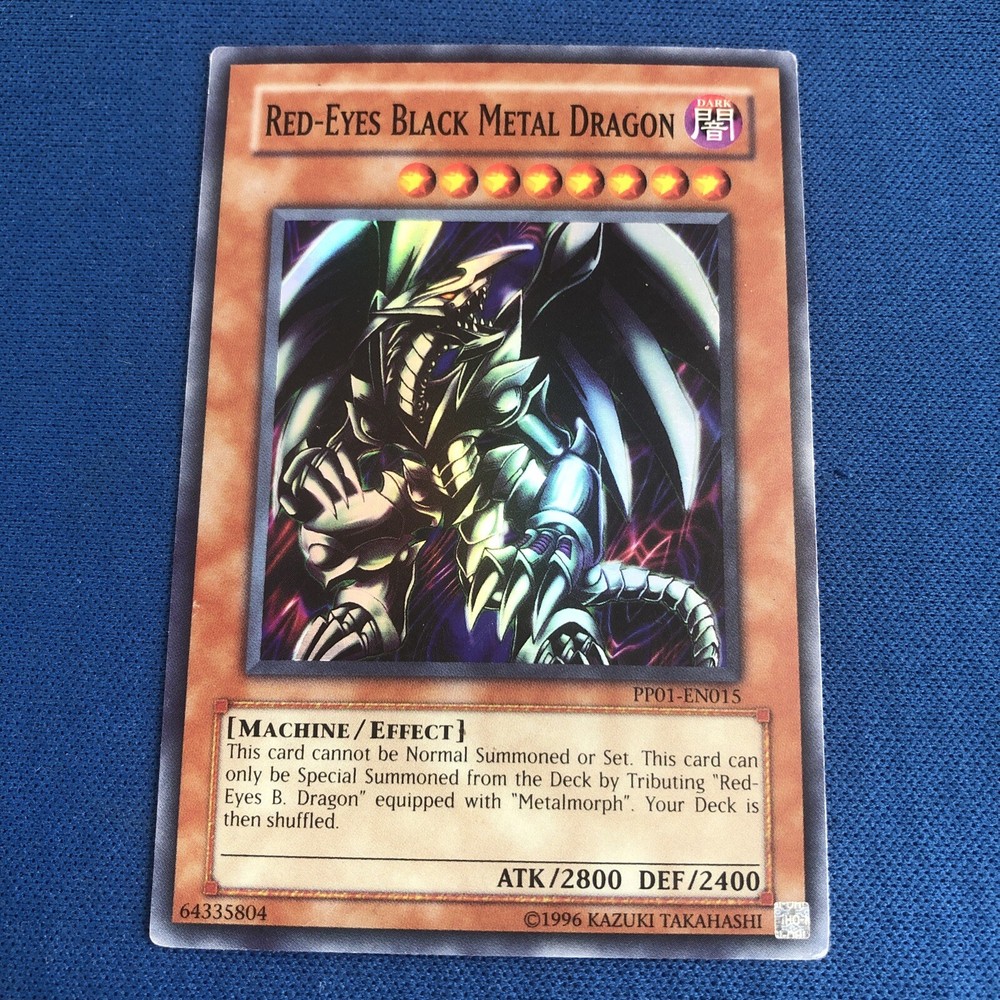 Red-Eyes Black Metal Dragon Secret Rare PP01-EN015 Unlimited Yugioh Card See Des Information: This is a previously owned card and it is in Heavily Played condition. The card is clean. The front of the card has some lifting around the corners. The back of the card has some scuffs and fading. There is little to no white showing around the edges of the back of the card. The card has been kept in a plastic sleeve cover and has no odor. Please review the pictures of the cards condition since it is not professionally graded. Feel free to ask for more pictures about the card since there are no returns. Shipping: The card will be shipped with a top loading card protector as well as cardboard reinforcement.