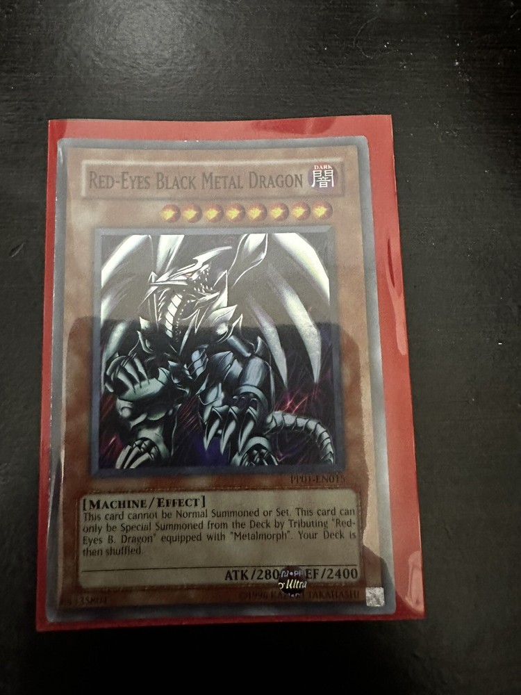 Super Rare Unlimited Red Eyes Black Metal Dragon for sale. The card is in great condition but I used to not have it sleeved the the sides of the card have some minor damage. Besides that, the card is in great condition. Please feel free to message me if you have any questions. Thank you