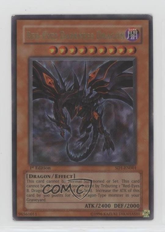 2005 Yu-Gi-Oh! Dragon's Roar - Structure Deck [Base] - 1st Edition #SD1-EN001 Red-Eyes Darkness Dragon COMC Item: 105004895 - YuGiOh Card - Featuring Red-Eyes Darkness Dragon Search for more: 2005 Yu-Gi-Oh! Dragon's Roar Search for more: 2005 Yu-Gi-Oh! Dragon's Roar - Structure Deck [Base] - 1st Edition View all of our Listings Auctions Buy It Now About Us Located in the beautiful Pacific Northwest, COMC (Check Out My Cards) is the world's largest consignment service for trading card singles. More than 10,000 people have used our consignment service to list over 50 million trading cards. Find out how we can help you consign your items on eBay by contacting us through eBay messaging. COMC -- "The Safe & Easy Way to Buy & Sell" Raw Condition for Modern Cards Unless otherwise noted, raw modern cards are listed in Near Mint-Mint condition or better. A NM-MT card appears to be Mint at first glance, but upon closer inspection, may exhibit some of the following: minor print defects (e.g. roller marks, print line, dimple), minor scratches, slight edge wear, and slight corner wear. Centering is clearly visible in the images provided and does not factor into our condition assessment. Raw Condition for Vintage Cards Unless otherwise noted, raw vintage cards are listed in Excellent condition or better. An EX card may exhibit some of the following: minor rounding of corners, surface wear, print defects, light scratches, and slight edge wear/chipping. Centering is clearly visible in the images provided and does not factor into our condition assessment. Domestic Shipping Combined shipping for multiple items is available. To receive combined shipping, please ensure all desired items are in your eBay shopping cart before proceeding to checkout. eBay limits orders to 40 items per order. We automatically combine multiple orders placed on the same day. If you place multiple orders on the same day, please contact us to request a refund of applicable shipping costs. Signature confirmation may be required on invoices over $400. All cards are protected and shipped securely. International Shipping COMC offers eBay's International Shipping (EIS) for international orders under $2,500* (see country exceptions below). All duties and import fees are paid at checkout; in the rare event that there are additional import fees upon delivery, these are borne by the buyer. EIS packages route through a shipping hub in Erlanger, KY before shipping to their final destination. Please note that EIS does not allow for combined shipments. The shipping rates are determined by eBay and cannot be adjusted. *Maximum sale price exceptions: Colombia, Kuwait ($2,000); Taiwan ($1,539); Chile, Costa Rica, Guatemala, Honduras, Trinidad and Tobago ($1,000); Antigua and Barbuda, Aruba, Belize, Dominica, Grenada, Philippines, Saint Kitts and Nevis, Saint Lucia, Montserrat, Turks and Caicos Islands ($500); Dominican Republic, El Salvador ($200). Please request a shipping quote through eBay messaging for orders that exceed the maximum sale price supported by eBay's International Shipping. You will be responsible for all duties and import fees for international orders shipped outside the EIS. All cards are protected and shipped securely. Payment COMC does not accept offers on our cards through our eBay storefront. COMC utilizes eBay’s managed payments system. If you are experiencing difficulties making a payment, please contact eBay for assistance. Return Policy Returns are only accepted on the rare occasion the item is not as described. If you are making a return, please initiate the return process through eBay so a mailing label can be provided for you. Prior to listing, our expert team carefully assessed this item to represent it accurately. Please review the description and high-definition images prior to purchasing to ensure this item meets your satisfaction. We welcome you to contact us if you have further questions about this item. Trust and Integrity COMC carefully assesses each item consigned to us to prevent fraudulent items from entering the marketplace. If you believe an item offered on COMC may be fraudulent, please contact us with details so we can investigate the issue. Items we determine are outside our supported items policy may be removed. Last Modified: 5/27/2025 8:43:33 PM PDT