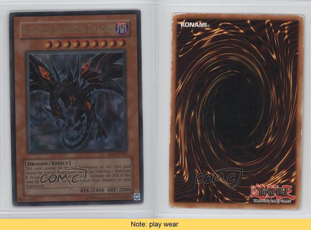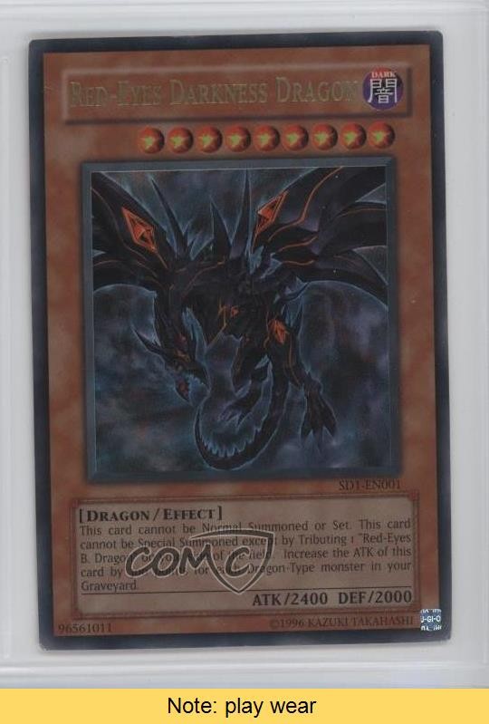 2005 Yu-Gi-Oh! Dragon's Roar - Structure Deck [Base] - Unlimited #SD1-EN001 Red-Eyes Darkness Dragon COMC Item: 42186695 CONDITION NOTE: play wear - YuGiOh Card - Featuring Red-Eyes Darkness Dragon Search for more: 2005 Yu-Gi-Oh! Dragon's Roar Search for more: 2005 Yu-Gi-Oh! Dragon's Roar - Structure Deck [Base] - Unlimited View all of our Listings Auctions Buy It Now About Us Located in the beautiful Pacific Northwest, COMC (Check Out My Cards) is the world's largest consignment service for trading card singles. More than 10,000 people have used our consignment service to list over 50 million trading cards. Find out how we can help you consign your items on eBay by contacting us through eBay messaging. COMC -- "The Safe & Easy Way to Buy & Sell" Raw Condition for Modern Cards Unless otherwise noted, raw modern cards are listed in Near Mint-Mint condition or better. A NM-MT card appears to be Mint at first glance, but upon closer inspection, may exhibit some of the following: minor print defects (e.g. roller marks, print line, dimple), minor scratches, slight edge wear, and slight corner wear. Centering is clearly visible in the images provided and does not factor into our condition assessment. Raw Condition for Vintage Cards Unless otherwise noted, raw vintage cards are listed in Excellent condition or better. An EX card may exhibit some of the following: minor rounding of corners, surface wear, print defects, light scratches, and slight edge wear/chipping. Centering is clearly visible in the images provided and does not factor into our condition assessment. Domestic Shipping Combined shipping for multiple items is available. To receive combined shipping, please ensure all desired items are in your eBay shopping cart before proceeding to checkout. eBay limits orders to 40 items per order. We automatically combine multiple orders placed on the same day. If you place multiple orders on the same day, please contact us to request a refund of applicable shipping costs. Signature confirmation may be required on invoices over $400. All cards are protected and shipped securely. International Shipping COMC offers eBay's International Shipping (EIS) for international orders under $2,500* (see country exceptions below). All duties and import fees are paid at checkout; in the rare event that there are additional import fees upon delivery, these are borne by the buyer. EIS packages route through a shipping hub in Erlanger, KY before shipping to their final destination. Please note that EIS does not allow for combined shipments. The shipping rates are determined by eBay and cannot be adjusted. *Maximum sale price exceptions: Colombia, Kuwait ($2,000); Taiwan ($1,539); Chile, Costa Rica, Guatemala, Honduras, Trinidad and Tobago ($1,000); Antigua and Barbuda, Aruba, Belize, Dominica, Grenada, Philippines, Saint Kitts and Nevis, Saint Lucia, Montserrat, Turks and Caicos Islands ($500); Dominican Republic, El Salvador ($200). Please request a shipping quote through eBay messaging for orders that exceed the maximum sale price supported by eBay's International Shipping. You will be responsible for all duties and import fees for international orders shipped outside the EIS. All cards are protected and shipped securely. Payment COMC does not accept offers on our cards through our eBay storefront. COMC utilizes eBay’s managed payments system. If you are experiencing difficulties making a payment, please contact eBay for assistance. Return Policy Returns are only accepted on the rare occasion the item is not as described. If you are making a return, please initiate the return process through eBay so a mailing label can be provided for you. Prior to listing, our expert team carefully assessed this item to represent it accurately. Please review the description and high-definition images prior to purchasing to ensure this item meets your satisfaction. We welcome you to contact us if you have further questions about this item. Trust and Integrity COMC carefully assesses each item consigned to us to prevent fraudulent items from entering the marketplace. If you believe an item offered on COMC may be fraudulent, please contact us with details so we can investigate the issue. Items we determine are outside our supported items policy may be removed. Last Modified: 6/2/2025 4:41:47 PM PDT