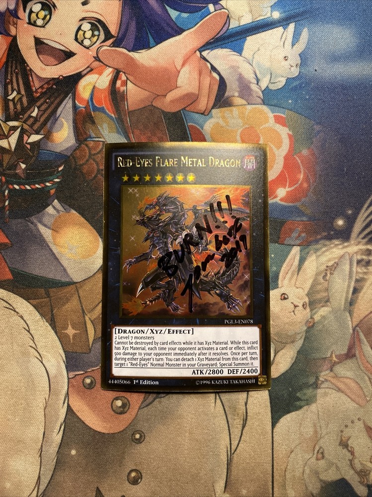 Red-Eyes Flare Metal Dragon - PGL3-EN078 Gold Rare 1st ed *SIGNED* Yugioh Card. *Signature: "BURN!!! ~Tombox 2019"