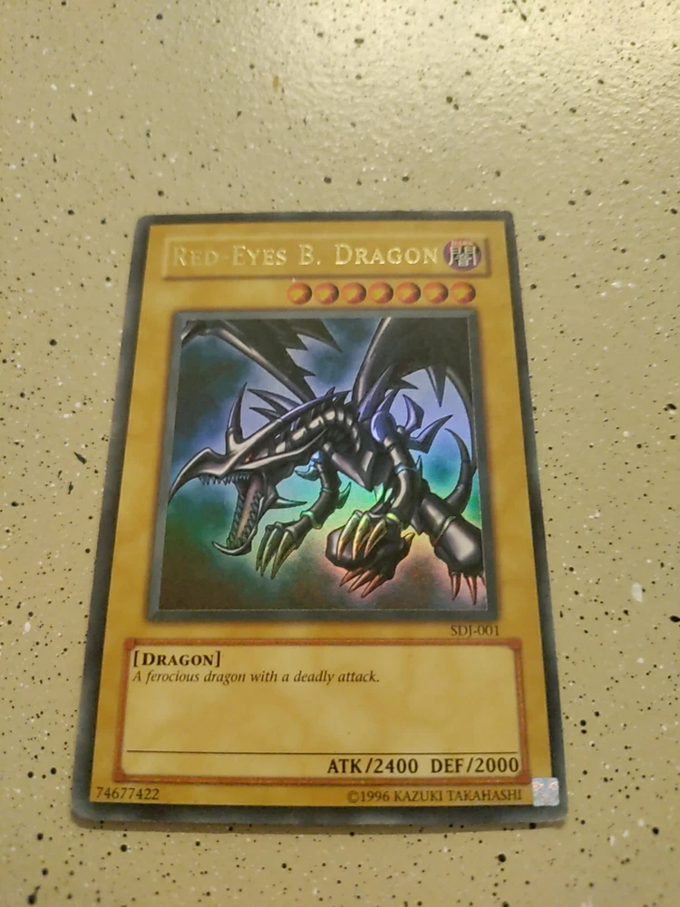This is a highly coveted collectible card game individual card, the Red-Eyes Black Dragon, listed as Ultra Rare. The card is marked as SDJ-EN001 and has been previously played, but its value is still great for collectors or players. It's a must-have for anyone looking to enhance their card game experience.
