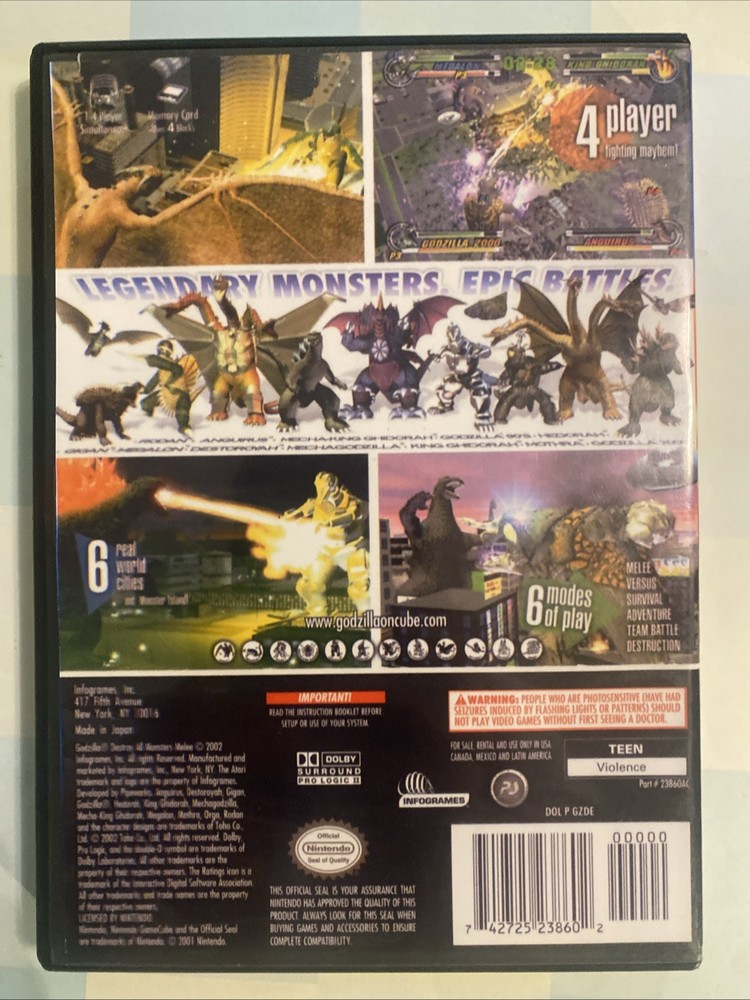 A replacement case for Nintendo Gamecube game Godzilla Destroy All Monsters Custom designed cover artwork and case only. Will come in a dvd style case and includes custom artwork only. No game. No manual. See pics. Thanks for viewing.