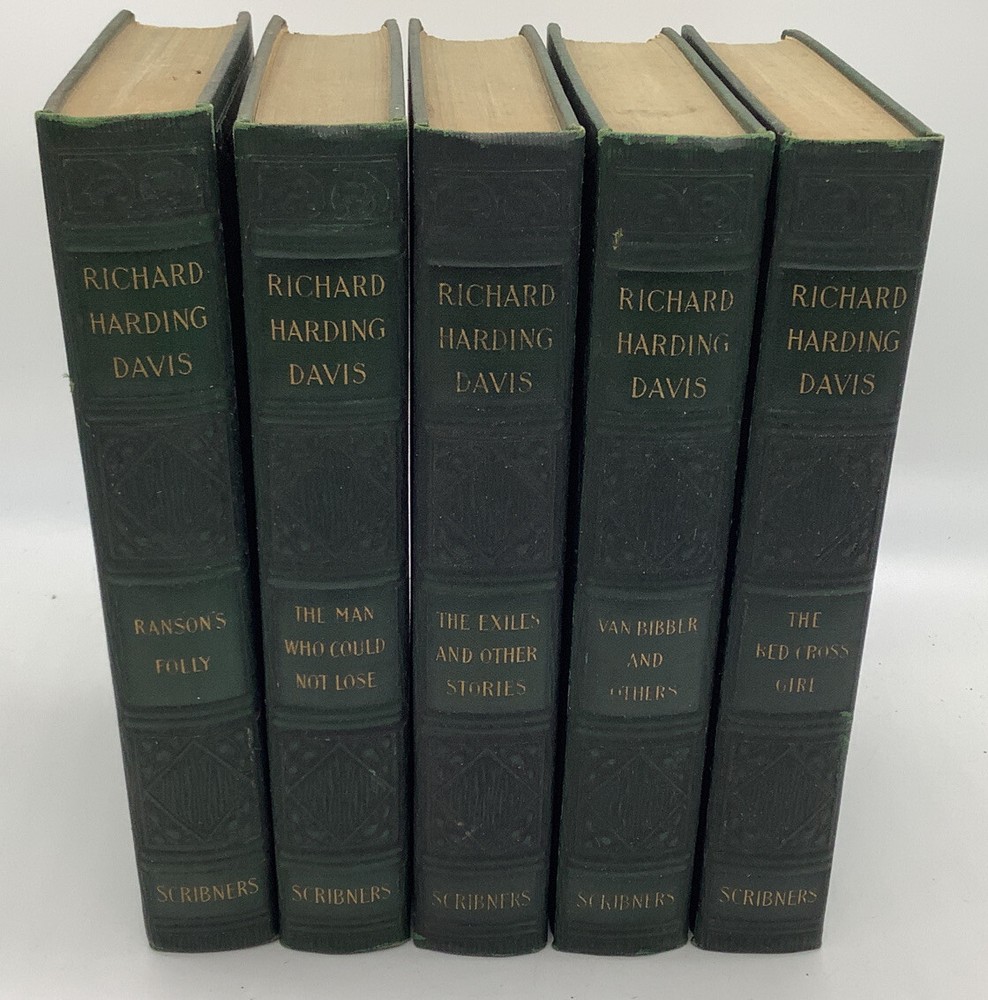 Richard Harding Davis 5 volume set 1927 edition. There are no rips, tears or personal notes in or on these copies. See photos for condition. Bindings are tight. All have lite foxing. Pages have slightly yellowed do to age. All photos are of the books listed. Shipped USPS Priority Mail. The Red Cross Girl 1927 Van Bibber and others 1927 The man who could not lose 1927 The Exiles and other stories 1927 Ranson’s Folly 1927