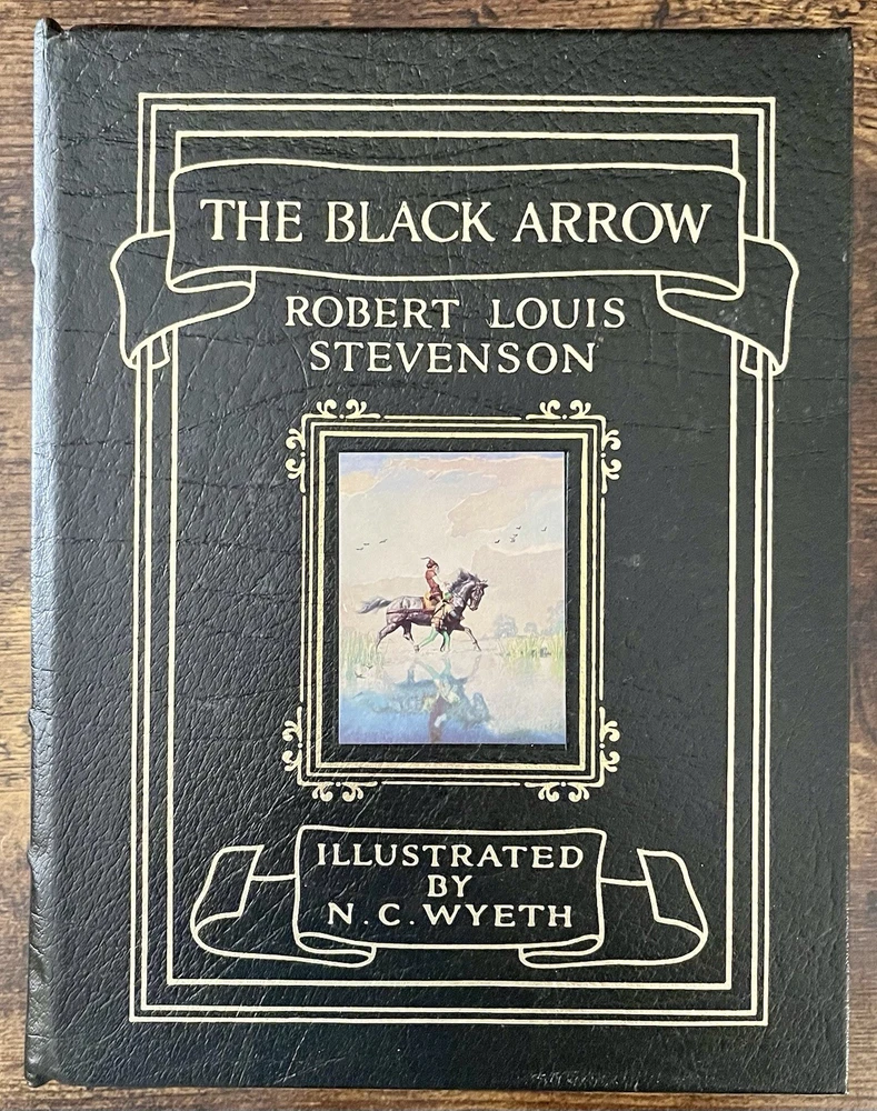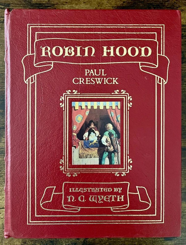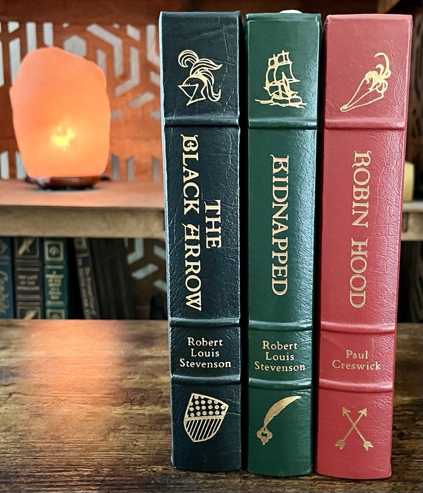 The product is a luxury edition leather bound set of "Robin Hood, The Black Arrow, and Kidnapped" by Robert Louis Stevenson and Paul Creswick, respectively. Published by Easton Press in 1991, this collector's edition features original illustrations by N.C. Wyeth and is bound in leather. The set includes the stories of Robin Hood, The Black Arrow, and Kidnapped, making it a valuable addition to any literature collection. This limited edition set was published in Norwalk, Connecticut, in the United States, and is a special edition that showcases the iconic works of the authors and the illustrations by the renowned illustrator. You will receive the exact item pictured. Please reach out with any questions, as all sales are final. Thank you for visiting our store!