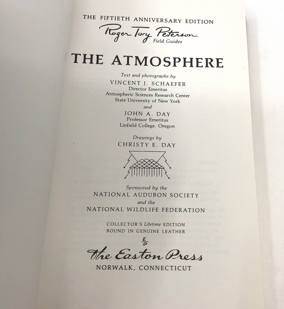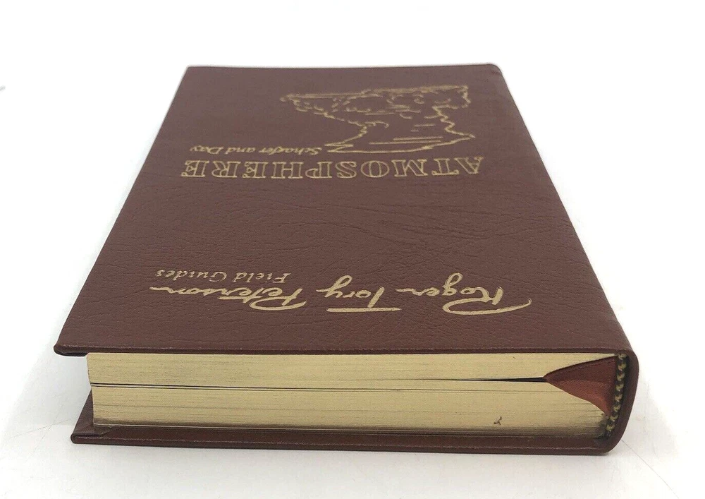 Roger Tory Peterson Field Guides ATMOSPHERE 50th Anniversary Lifetime collector’s Ed 1984 Leather bound hardback with gilt edged pages and ribbon bookmark Excellent condition as shown, note bookplate inside cover. Please look carefully at photos Thanks for looking!