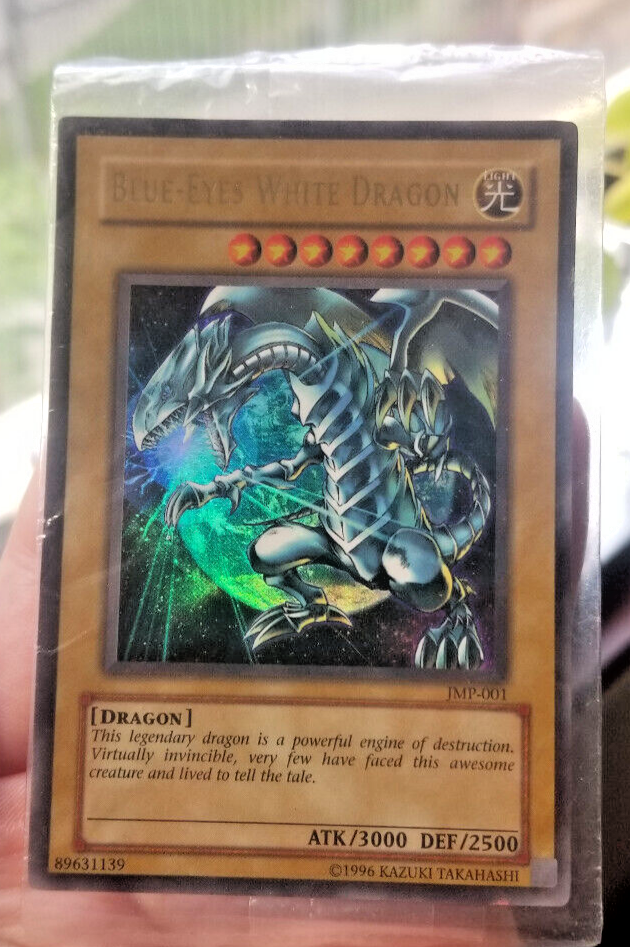 SEALED Blue-Eyes White Dragon - Super Rare HOLO Official Yu-Gi-Oh! Card never opened JMP-001 Stored in smoke-free, temperature controlled, pet free environment. Please check photos for condition. Photos are mine.