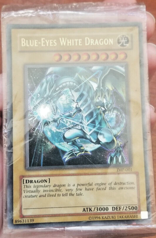 SEALED Blue-Eyes White Dragon - Super Rare HOLO Official Yu-Gi-Oh! Card never opened JMP-001 Stored in smoke-free, temperature controlled, pet free environment. Please check photos for condition. Phot...
