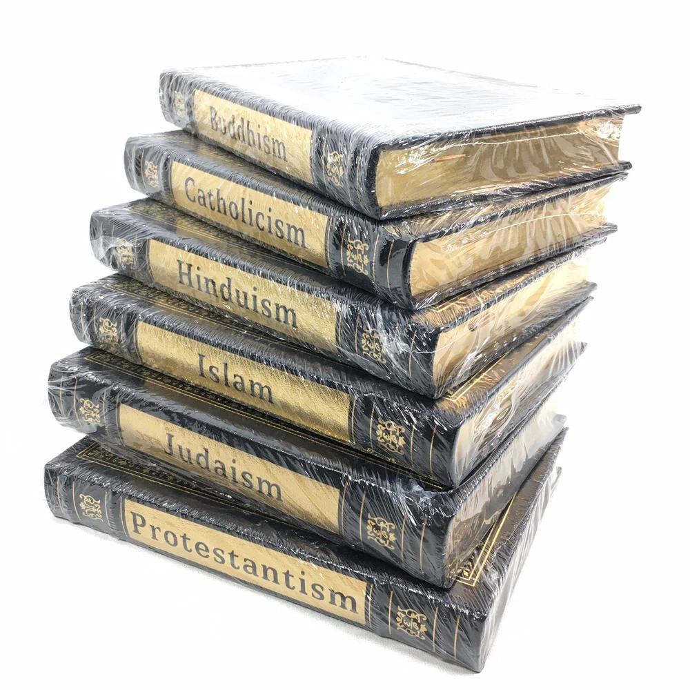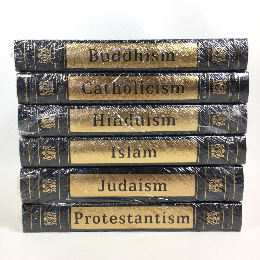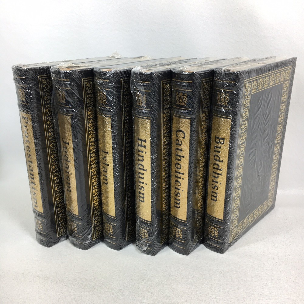 World's Great Religions Easton Press Brand new, factory sealed. Complete set of six individual volumes. Highly collectible Easton Press edition, black leather binding, 22 kt gold gilt detailing, moire, satin bookmark, and beautiful raised ribs on the spine. Comes from a smoke free environment. Copyright date is unknown due it being factory sealed; believed to be from 1994? Each book masures approximately 9" x 6" x 1.25". Set includes: Buddhism Catholicism Hinduism Islam Judaism Protestantism Photos are of the ACTUAL books you will receive. We strongly encourage you to thoroughly read the condition details above and to view all of the photos before purchasing, as these photos describe the item most accurately. If you have any questions or concerns, please do not hesitate to contact us and we will get back to you as soon as we can. All items are sold AS-IS with no returns, all sales are final, and all orders are packaged properly and promptly shipped from Las Vegas, NV, USA. Thank you for your interest; please take the time to view our store Curioddities , as we have a wide variety of items including antiques, books and magazines, collectibles, music, toys, and many other vintage rarities and obscurities. We will combine shipping costs, just ask!