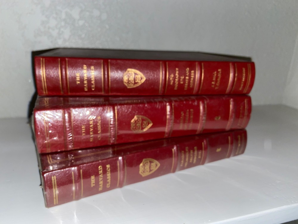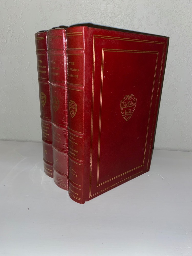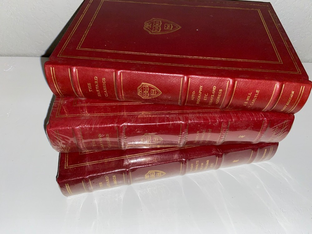 Perfect for your personal library, these genuine leather books have never been opened and are looking for a new home! 3 authentic Millennium Edition, Harvard Classics from Easton Press. Eliot Edition printed in 1993. Gold plated edges and spines! These titles were hand selected by the publisher and deemed some of "the best [literature] in the world". Add a unique and vintage feel to your home or read at your leisure! 2 out of 3 still in original plastic packaging! Volumes 25, 30, and 43 of Harvard Classics 50 book set. See our other listing for other titles you may be interested in! All Editions: Measures 9"x6", 22k Gold gilded pages and gilt, Full red leather covers, Silk moire endpapers, Built-in satin bookmarks, Color frontispiece protected by tissue guard, High quality archival paper, Sewn-in binding, Raised spines for classy antique look and feel, Printed and bound in the USA, Introductions, Notes, and Illustrations. Titles Included: Autobiography, etc. Essays and Address by J.S. Mill & T. Carlyle Faraday, Helmholtz, Kelvin, Newcomb, etc. American Historical Documents Disclaimer: Some of the items have minor imperfections in gold edging.