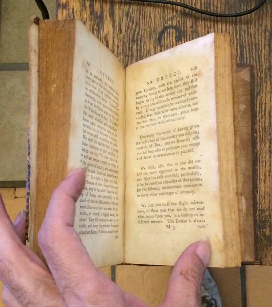 From Xochi's Upper Hall Showcase (btm left). 4 x 6 3/4", 372 pp (V1), 344 pp (V2), J Milliken College Green, 1773 Irish First Edition. By M De Buys. Very rare 'A series of letters written from Constantinople'. FREE US SHIPPING!